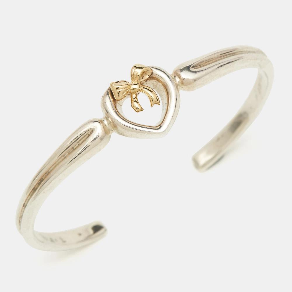 Ultra modern and chic in design, this Tiffany and Co. bracelet exhibits contemporary fashion. The luxe design is set with distinct elements to give the creation a classy touch. This sweet piece will look great when paired with other bracelets and even solo.Certified by The Luxury Closet - This item has gone through a detailed authentication process overseen by our experts. We offer a lifetime guarantee of authenticity on all our items. Import duties, taxes and charges are not included in the item price. These charges are the buyers responsibility. Please check with your country’s customs office to determine what these additional cost will be prior to buying. Our eBay Store About Us Contact Us Add to Favorite Sellers Tiffany & Co. Heart Bow 18k Yellow Gold Sterling Silver Bracelet $446.6 Ultra modern and chic in design, this Tiffany and Co. bracelet exhibits contemporary fashion. The luxe design is set with distinct elements to give the creation a classy touch. This sweet piece will look great when paired with other bracelets and even solo. Product Details Brand Color Yellow Dimensions Width: 1.36 cm Material Size Outsole Width Outsole Length Heel Height Includes The Luxury Closet Packaging Certified by The Luxury Closet This item has gone through a detailed authentication process overseen by our experts. We offer a lifetime guarantee of authenticity on all our items. How We Check The in-house team of experts at The Luxury Closet is highly trained to verify the authenticity and the condition of the luxury products. They ensure that only 100% authentic items are put on sale.The evaluation process is unique with its own mix of assessment criteria and differs according to the category. Each item is evaluated based on the following combination of hallmarks, hardware, stitching, symmetry, material, craftsmanship, stamping, codes, hologram stickers, and packaging. Our authenticators also check if the items have been modified or amended (e.g., aftermarket diamonds, replaced batteries, repaired bags, etc.) International Buyers Import duties, taxes and charges are not included in the item price. These charges are the buyers responsibility. Please check with your country’s customs office to determine what these additional cost will be prior to buying.