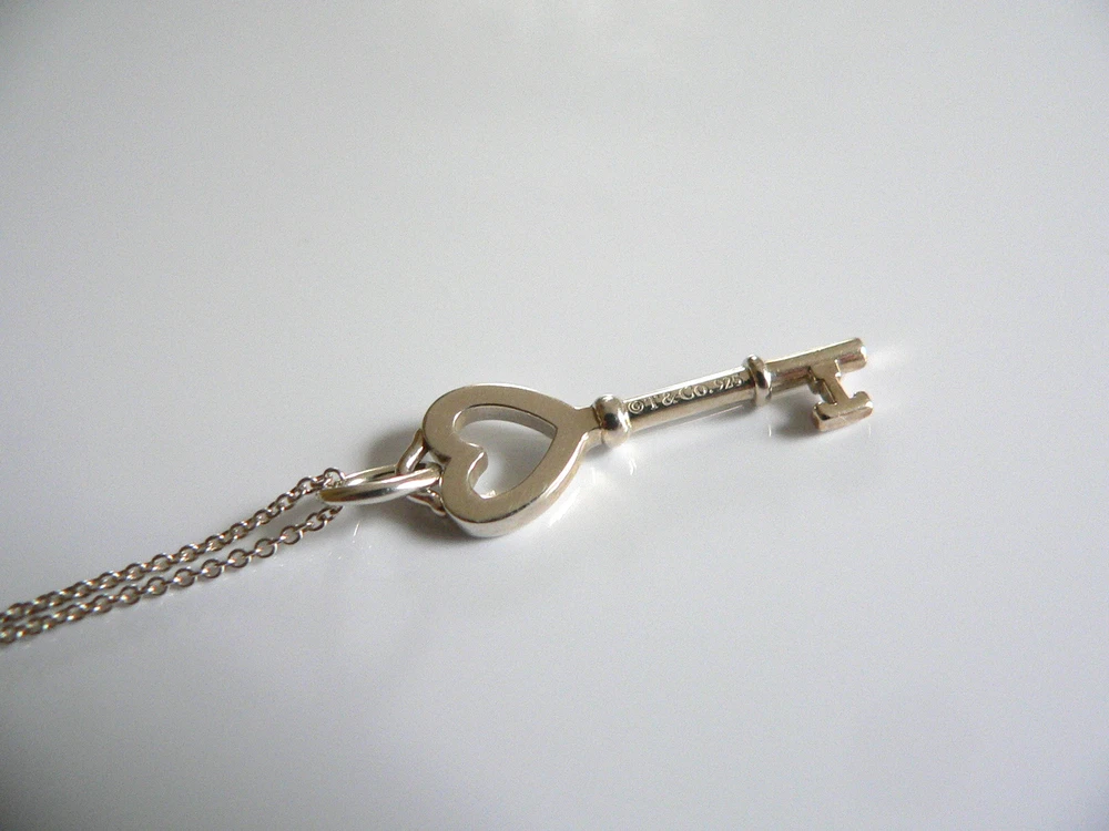 Overview: Offered for sale is a fantastic and very pretty Tiffany and Co. Sterling Silver Heart Key Necklace. Wonderful necklace that fits a lifestyle on the go -- the necklace can be worn to almost any occasion! Hanging from its beautiful Tiffany & Co sterling silver curb chain is a very pretty Heart Key pendant. It is simple and yet looks extremely elegant. Perfect way to say "Here's the key to my heart :)" without ever having to say a word - believe me, she will know! :) Imagine the piece with your professional office attire ... Now imagine it with jeans or weekend wear ... Perfect in every way! The item is very comfortable to wear, and is in very good condition. A classic Tiffany piece to start or add to your collection. Both key pendant and chain are fully hallmarked and guaranteed to be 100% authentic. Wonderful present for yourself or anyone you love! Will surely delight! Particulars: Size & Measurements: The key pendant is approx 1.25 inches. The chain is approx. 17 inches long. Metal & Hallmarks: T & Co. / 925 (on key pendant) Tiffany & Co. / 925 (on chain) Solid 925 sterling silver Please check out my other unique and interesting Tiffany items on sale.