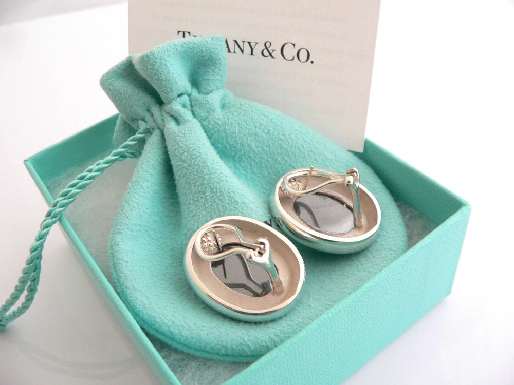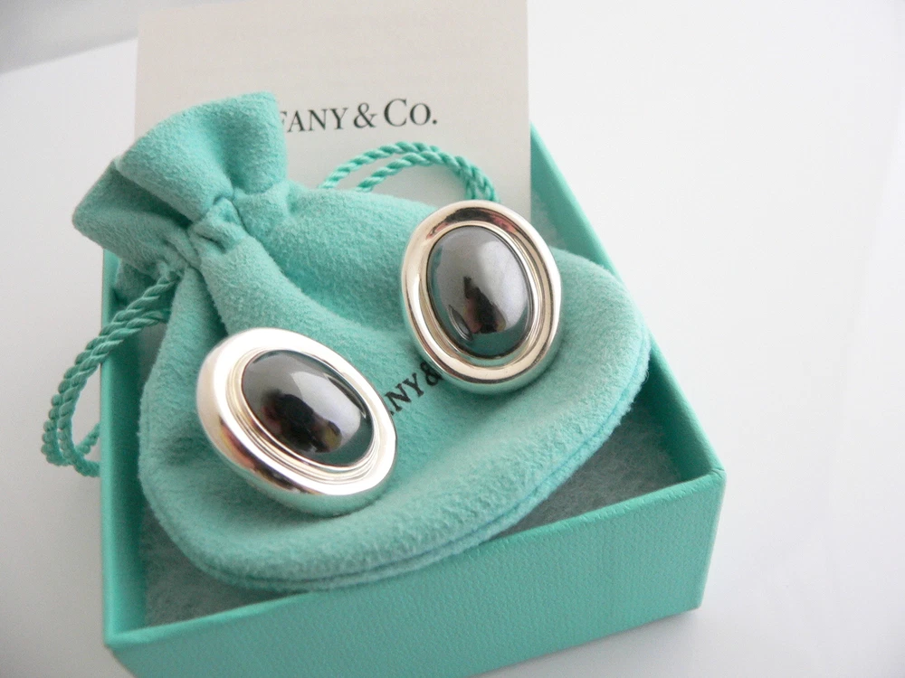 Overview: Time to pull your hair back and show off your awesome and gorgeous earrings! Offered for sale is a wonderful and very rare pair of Tiffany and Co. Picasso Silver & Hematite Gemstone Pierced earrings! A very pretty pair that will certainly be a conversation starter! I am 100% sure you will get many compliments when you wear them, so be ready :) It is like wearing a piece of art - right on ears! Adds just the right "Pop" of color and Tiffany style to any outfit! Very versatile pair of earrings that works well with almost any outfit you put on. Imagine the piece with a nice sundress ... now imagine wearing it with jeans and a crisp white shirt ... or with your ultra chic cocktail dress ... Perfection! Certainly a wonderful treasure to find ... right here on Ebay! No longer in production, it is perfect for the collector! Great piece to start or add to your Tiffany collection. The earrings are fully hallmarked and is guaranteed to be 100% authentic. Wonderful present for yourself or anyone you love! Will surely delight! It will come with its Tiffany pouch, box, and sterling care card as shown! Perfect and ready for gifting! Particulars: Size & Measurements: The earrings are approx. 1.05 inches each. Metal & Hallmarks: 1985 / Tiffany & Co. / Paloma Picasso / 925 Solid 925 sterling silver and a Gorgeous Hematite Gemstone Please check out my other unique and interesting Tiffany items on sale.