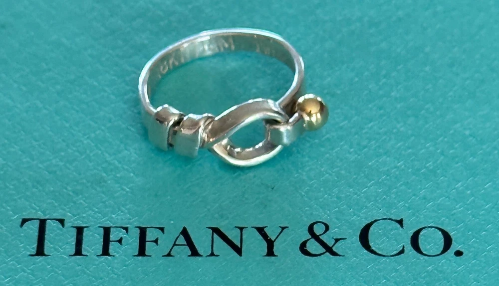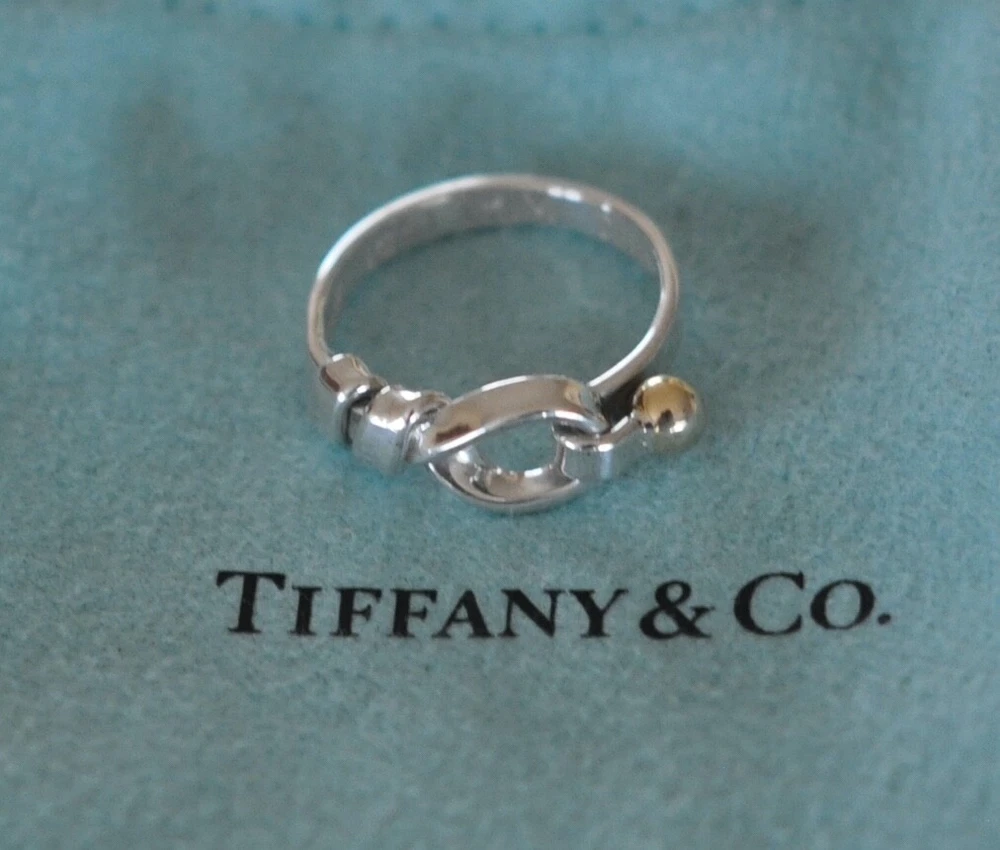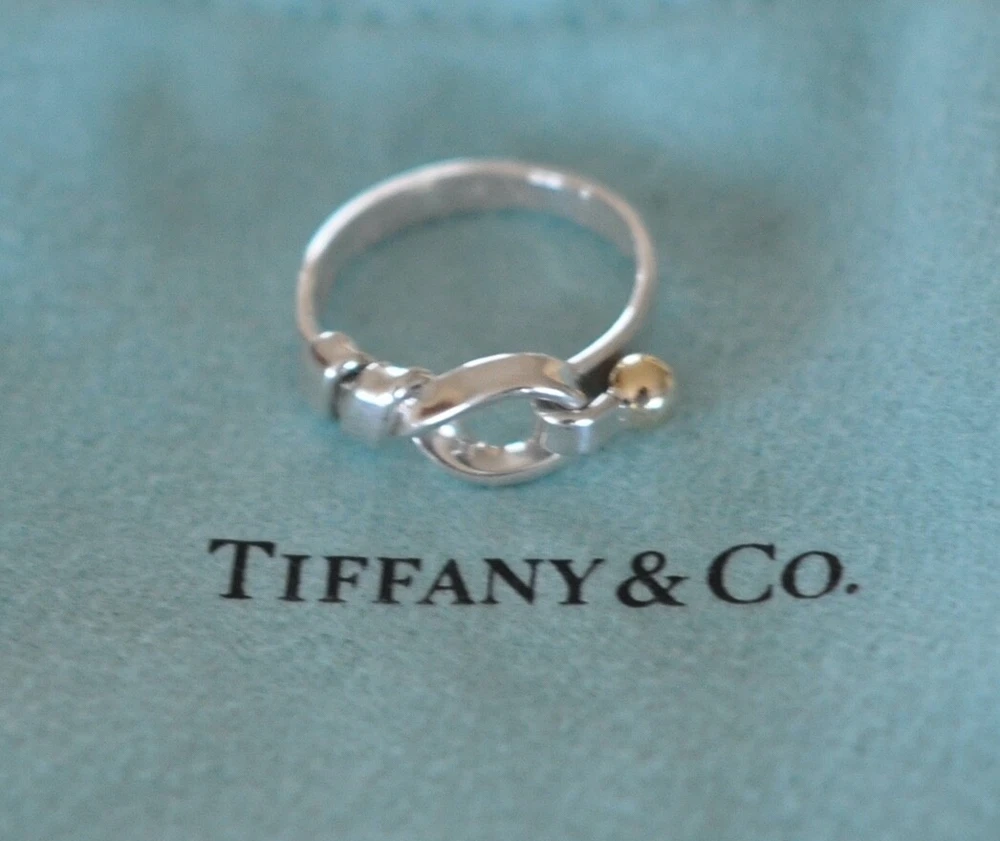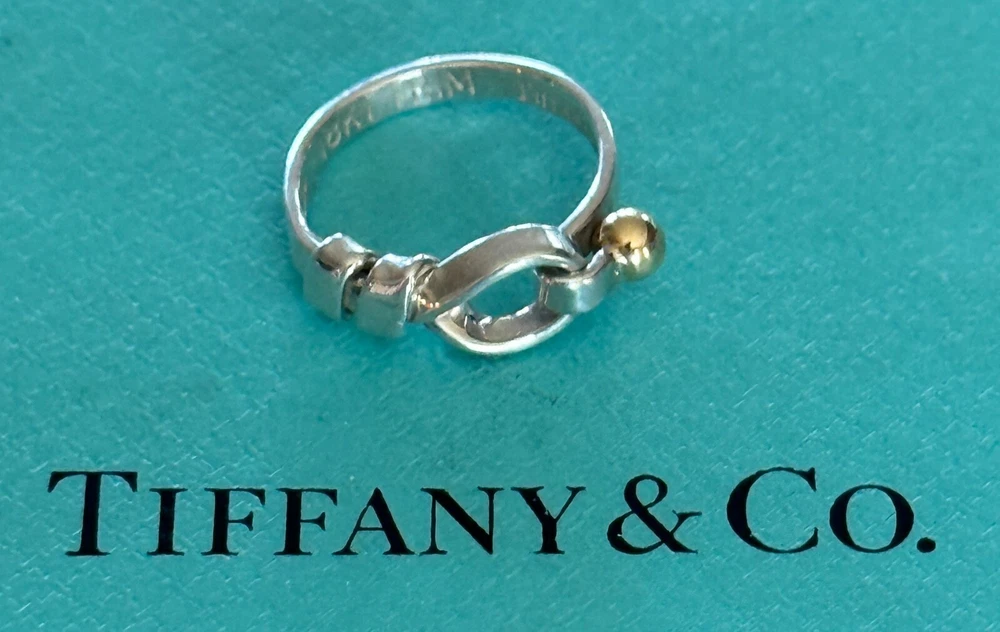 Tiffany & Co.Hook & Eye Ring. Sterling Silver 925 & 18k Gold Trim. Size 6 US. No box or pouch. All Our Tiffany & Co. Items are Authentic.