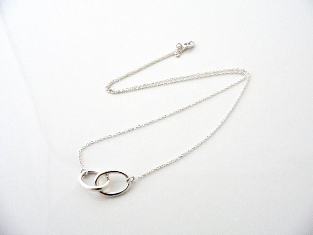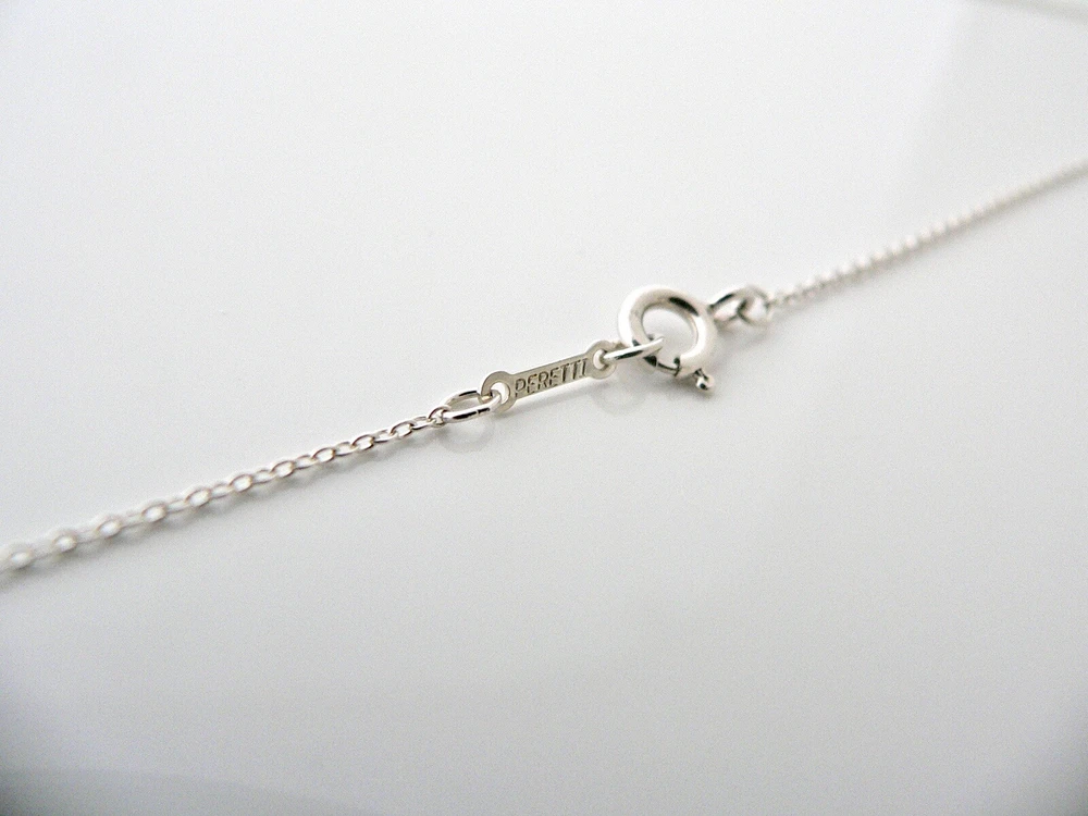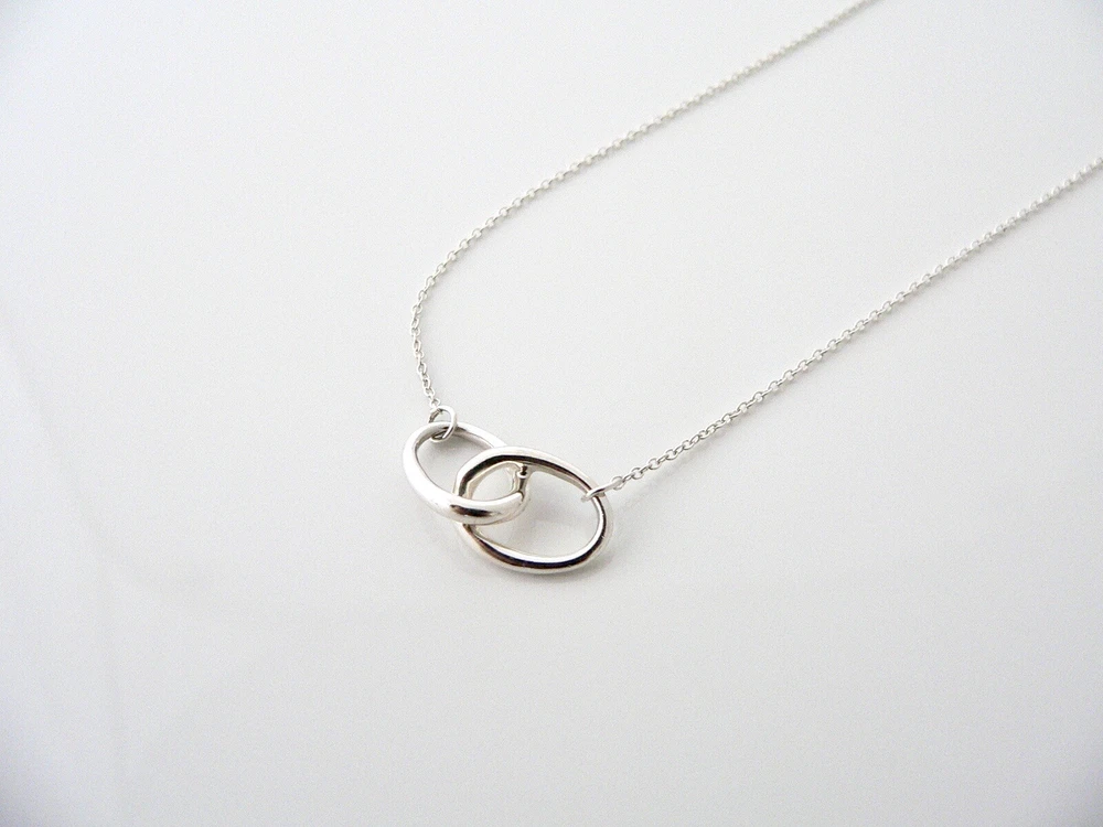 Overview: This necklace is Elsa Peretti's take on the interlocking necklace -- it is a vintage and rare piece that you do not stumble upon very often so get it while you can! Offered for sale is a gorgeous Tiffany & Co. Peretti Silver Interlocking Ovals necklace. The piece is crafted from bright and substantial Tiffany silver. Great and unique way to say "I love you" or "I love me :)!". It is a wonderful necklace that fits a lifestyle on the go -- the necklace can be worn to almost any occasion! It is simple, elegant, and classic all rolled into one necklace. Imagine the piece with your professional office attire ... Now imagine it with jeans or weekend wear ... Perfect! It will be the only necklace you need when traveling as it is super versatile! The item is very comfortable to wear, and is in excellent condition. No longer in production, it is also perfect for the collector. It is a classic Tiffany piece to start or add to your collection. The necklace is fully hallmarked and guaranteed to be 100% authentic. Wonderful present for yourself or anyone you love! Will surely delight! Particulars: Size & Measurements: The chain is 16 inches from end to end. Metal & Hallmarks: Tiffany & Co. / Peretti / 925 Solid 925 sterling silver Please check out my other unique and interesting Tiffany items on sale.