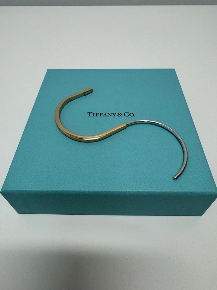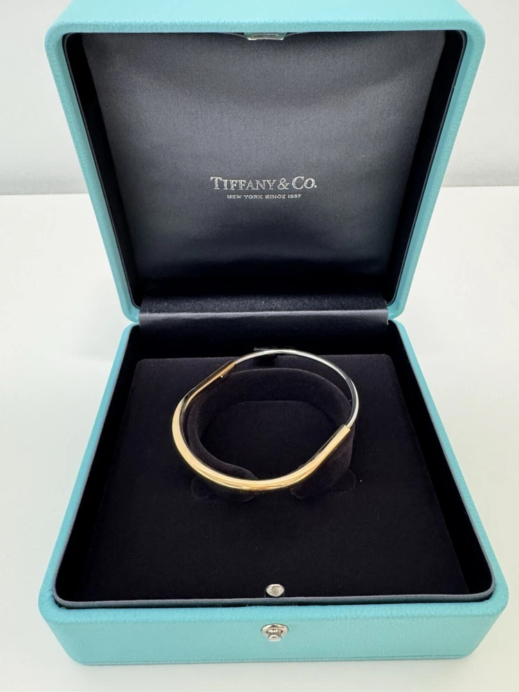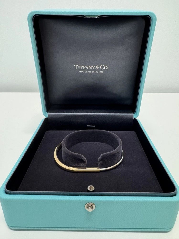 Tiffany Lock is an expression of love’s enduring protection, inspired by a padlock from The Tiffany Archives that dates to 1883. Designed to keep safe that which is cherished, Lock is a universal symbol of what matters most. This style is expertly crafted in 18k yellow and white gold. For maximum impact, pair it with other designs from the Tiffany Lock collection. Our 18k white gold is plated with rhodium to maintain its brilliance. Hidden closure SIZE MEDIUM - MSRP: $4,500 * 18k Rose and white gold * Motif size, narrow * Wrist size, medium