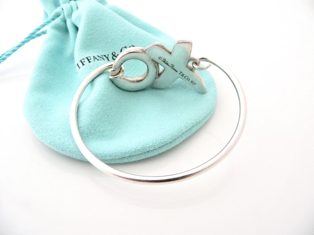 Overview: Offered for sale is a wonderful and gorgeous Tiffany & Co. Sterling Silver XO Bangle. Definitely a Tiffany piece that you will get your money's value for. It works perfectly with pretty much any attire your put on, AND is a great statement piece. The piece looks fabulous worn alone, but is also a wonderful piece with which to start or add to your Tiffany collection. This piece is simple, elegant, and classic all rolled into one bracelet. Imagine wearing the piece with your office attire... now imagine it with jeans or weekend wear ... Perfect anytime! It is a perfect Tiffany piece to start or add to your collection. As always, the item is hallmarked and guaranteed to be 100% authentic. Comes with its Tiffany pouch as shown! Wonderful present for yourself or anyone you love! Will surely delight! Particulars: Size & Measurements: The bracelet is approx. 2.1 inches in diameter. Metal & Hallmarks: T & Co / Paloma Picasso / 925 Solid 925 sterling silver Please check out my other unique and interesting Tiffany items on sale.