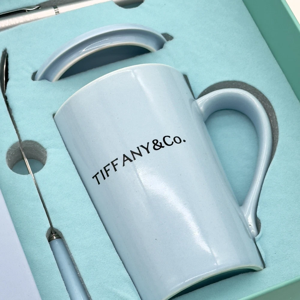 Immerse yourself in the elegance of Tiffany & Co with this Luxury Tea Cup and Journal Gift Set, a thoughtfully curated collection that combines practicality and sophistication. Perfect as a gift or a personal indulgence, this set celebrates the iconic Tiffany Blue in every detail. What’s Included: 1. Tiffany & Co Ceramic Tea Cup: A stunning Tiffany Blue ceramic tea cup with a matching glass lid to keep your beverage warm and a stainless steel spoon for the perfect stir. 2. Tiffany Blue Journal (The Blue Book): A high-quality hardcover journal embossed with “Tiffany & Co.” Perfect for journaling, planning, or taking notes with two built-in ribbon bookmarks for easy organization. 3. Signature Tiffany Pen: A sleek, polished silver ballpoint pen engraved with “Tiffany & Co.,” ensuring a smooth and elegant writing experience. Key Features: • Elegant Tiffany Design: Every piece showcases the iconic Tiffany Blue, delivering unmatched luxury and style. • Gift-Ready Presentation: Packaged in a signature Tiffany Blue box, this set is ideal for birthdays, holidays, or corporate gifting. • Premium Materials: Durable ceramic tea cup, high-quality metal pen, and luxurious journal are made to last. Dimensions & Care: • Tea Cup Capacity: 12 oz (approximately). • Journal Size: A5 (5.8 x 8.3 inches), perfect for portability and daily use. • Care Instructions: Hand wash the tea cup and glass lid for long-lasting use. Celebrate life’s special moments or enhance your daily routine with the elegance of Tiffany & Co. This set is perfect for tea lovers, writers, or anyone who appreciates timeless luxury. Order yours today!