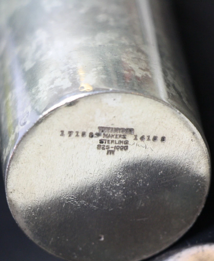 Tiffany & Co Makers Sterling Powder Container / Shaker. This measures 4 1/2" tall, 1 7/8" across. Dent on side, very hard to picture. The bottom is stamped Tiffany & co. Makers Sterling 925 1000 17158 14158 Shipped with USPS Priority Mail. Shipping will be $10.