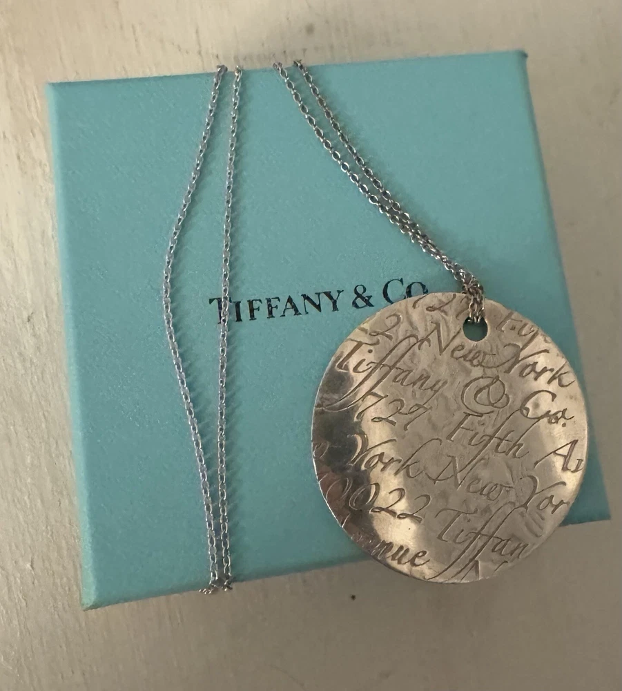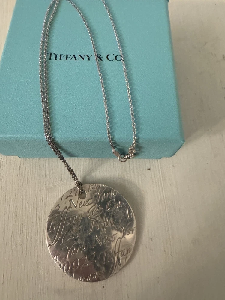 Collection: Tiffany & Co. Tiffany Notes Metal: Sterling Silver Main Stone Shape: no stone Necklace Length: 20in Material: sterling silver Country of Origin: United States Pendant Shape: Round Hallmarked: Yes Base Metal: Sterling Silver Type: Necklace Main Stone: No Stone Metal Purity: 925 Style: Chain Main Stone Colour: no stone Occasion: Valentine's Day Secondary Stone: No Stone Colour: Silver Closure: Push Lock Brand: Tiffany & Co.