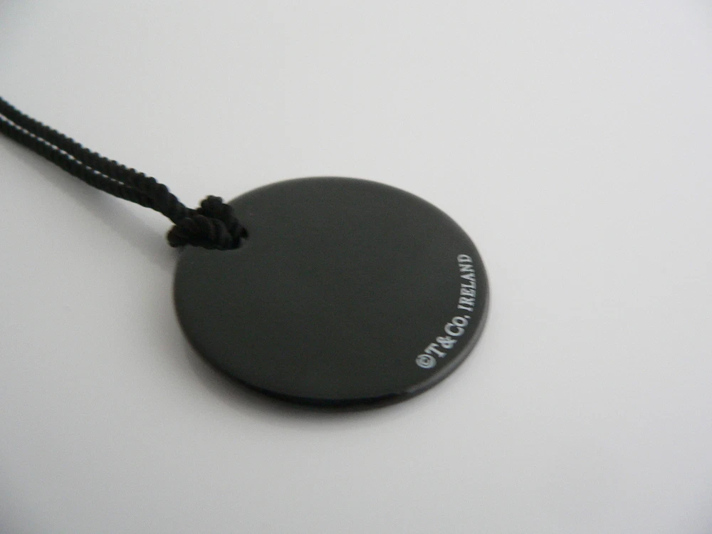 Overview: Have you been looking for an awesome Tiffany statement piece? No need to look any further - you just found it :) Offered for sale is a gorgeous and wonderful Tiffany and Co. Black Bone Notes Round Disc Necklace on a Silk Cord. Hanging from its extendable Tiffany silk cord is a gorgeous Black Bone Onyx Notes Circle pendant! Spectacular statement piece that adds the right touch of Tiffany style to any outfit! Wonderful necklace that fits a lifestyle on the go -- the necklace can be worn to almost any occasion! It is simple and yet looks extremely elegant. Imagine the piece with your professional office attire ... Now imagine it with jeans or weekend wear ... Perfect in every way! The item is very comfortable to wear, and is in excellent condition. A classic Tiffany piece to start or add to your collection. Both pendant and chain are fully hallmarked and guaranteed to be 100% authentic. Wonderful present for yourself or anyone you love! Will surely delight! Particulars: Size & Measurements: The pendant is 1.25 inches in diameter. The cord length is from 14.25 extendable to 16.25 inches (already knotted to the pendant) Metal & Hallmarks: Tiffany & Co. / 925 (circular tag on silk cord) T & Co. / Ireland (on pendant) Solid 925 sterling silver Please check out my other unique and interesting Tiffany items on sale.