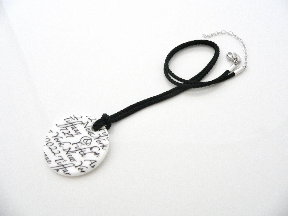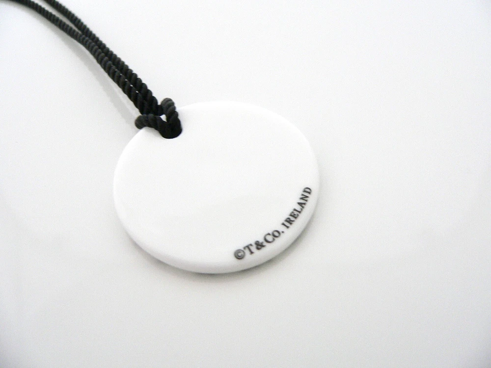 Overview: Have you been looking for an awesome Tiffany statement piece? No need to look any further - you just found it :) Offered for sale is a gorgeous and wonderful Tiffany and Co. White Bone Notes Round Disc Necklace on a Silk Cord. Hanging from its extendable Tiffany silk cord is a gorgeous White Bone Notes Circle pendant! Spectacular statement piece that adds the right touch of Tiffany style to any outfit! Perfect contrast of Black and White! Wonderful necklace that fits a lifestyle on the go -- the necklace can be worn to almost any occasion! It is simple and yet looks extremely elegant. Imagine the piece with your professional office attire ... Now imagine it with jeans or weekend wear ... Perfect in every way! The item is very comfortable to wear, and is in excellent / mint condition. A classic Tiffany piece to start or add to your collection. Both pendant and chain are fully hallmarked and guaranteed to be 100% authentic. Wonderful present for yourself or anyone you love! Will surely delight! Particulars: Size & Measurements: The pendant is 1.25 inches in diameter. The cord length is from 14 extendable to 16 inches (already knotted to the pendant) Metal & Hallmarks: Tiffany & Co. / 925 (circular tag on silk cord) T & Co. / Ireland (on pendant) Solid 925 sterling silver Please check out my other unique and interesting Tiffany items on sale.