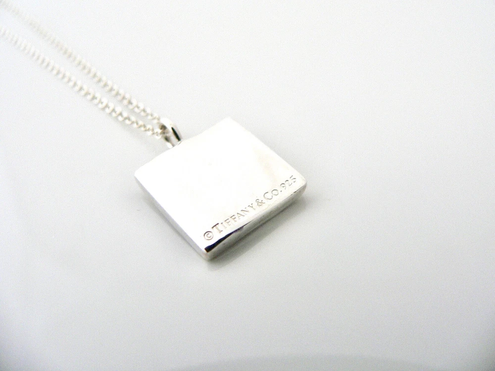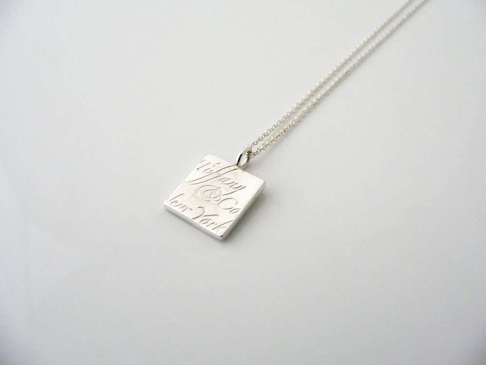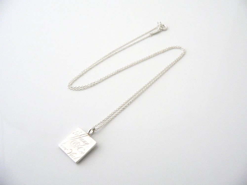 Tiffany & Co Notes Necklace Square Pendant Charm 18 Inch Chain Love Gift Classic