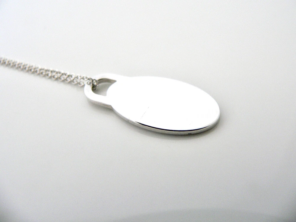 Overview:Offered for sale is a wonderful Tiffany classic. Whether you are just starting your Tiffany collection or are thinking of adding another piece, this one is perfect for you. Tiffany & Co.'s Sterling Silver Oval Tag necklace is a Tiffany classic that will never go out of style. It will most certainly be a piece that you will turn to over and over again, so it is great value for your money! It is a wonderful necklace that fits a lifestyle on the go -- the necklace can be worn to almost any occasion! It is simple, elegant, and classic all rolled into one necklace. Imagine the piece with your professional office attire ... Now imagine it with jeans or weekend wear ... Perfect! As always, the item is fully hallmarked and guaranteed to be 100% authentic.Wonderful present for yourself or anyone you love! Will surely delight! Particulars: Size & Measurements: The necklace is approx. 16.5 inches from end to end. The charm is 0.95 inches. Metal & Hallmarks: Tiffany & Co. / 925 Solid 925 sterling silver Please check out my other unique and interesting Tiffany items on sale.