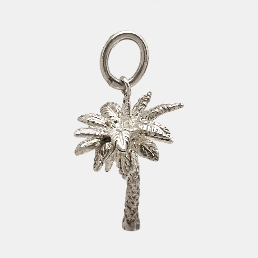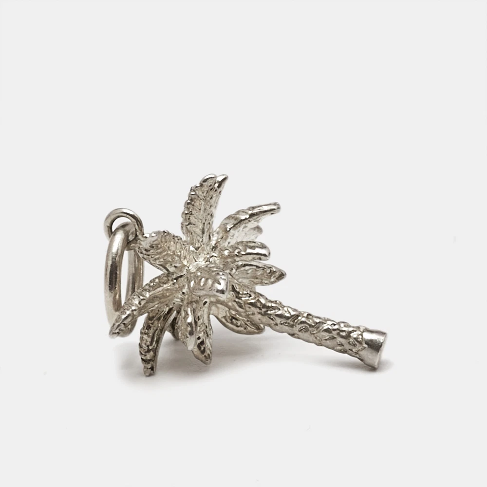 This Tiffany and Co. charm captures the spirit of paradise in polished sterling silver. Ideal for charm bracelets or necklaces, this finely crafted piece symbolizes relaxation and warm, tropical escapes. Its sleek, elegant design adds a touch of whimsy and sophistication, making it a perfect keepsake for travel lovers and style enthusiasts alike.Certified by The Luxury Closet - This item has gone through a detailed authentication process overseen by our experts. We offer a lifetime guarantee of authenticity on all our items. Import duties, taxes and charges are not included in the item price. These charges are the buyers responsibility. Please check with your country’s customs office to determine what these additional cost will be prior to buying. Our eBay Store About Us Contact Us Add to Favorite Sellers Tiffany & Co. Palm Tree Sterling Silver Charm $212.3 This Tiffany and Co. charm captures the spirit of paradise in polished sterling silver. Ideal for charm bracelets or necklaces, this finely crafted piece symbolizes relaxation and warm, tropical escapes. Its sleek, elegant design adds a touch of whimsy and sophistication, making it a perfect keepsake for travel lovers and style enthusiasts alike. Product Details Brand Color Silver Dimensions Height: 2.4 cm, Width: 1.42 cm Material Size Outsole Width Outsole Length Heel Height Includes Original Pouch Certified by The Luxury Closet This item has gone through a detailed authentication process overseen by our experts. We offer a lifetime guarantee of authenticity on all our items. How We Check The in-house team of experts at The Luxury Closet is highly trained to verify the authenticity and the condition of the luxury products. They ensure that only 100% authentic items are put on sale.The evaluation process is unique with its own mix of assessment criteria and differs according to the category. Each item is evaluated based on the following combination of hallmarks, hardware, stitching, symmetry, material, craftsmanship, stamping, codes, hologram stickers, and packaging. Our authenticators also check if the items have been modified or amended (e.g., aftermarket diamonds, replaced batteries, repaired bags, etc.) International Buyers Import duties, taxes and charges are not included in the item price. These charges are the buyers responsibility. Please check with your country’s customs office to determine what these additional cost will be prior to buying.