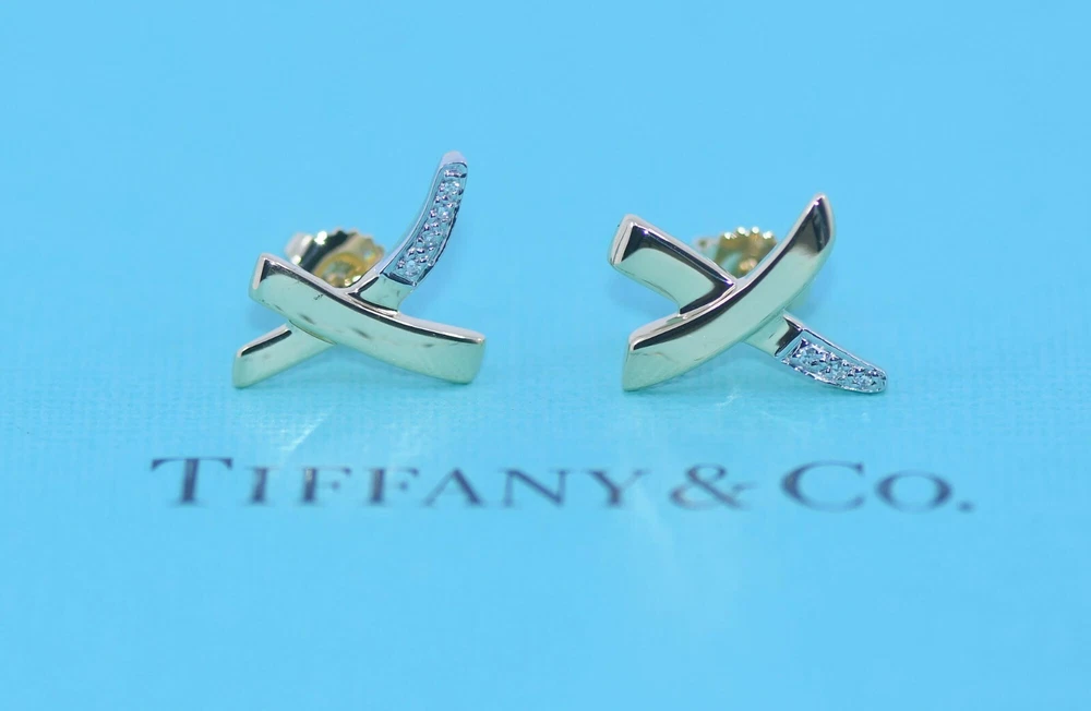 Tiffany & Co Paloma Picasso Diamond X 18K Yellow Gold Earrings