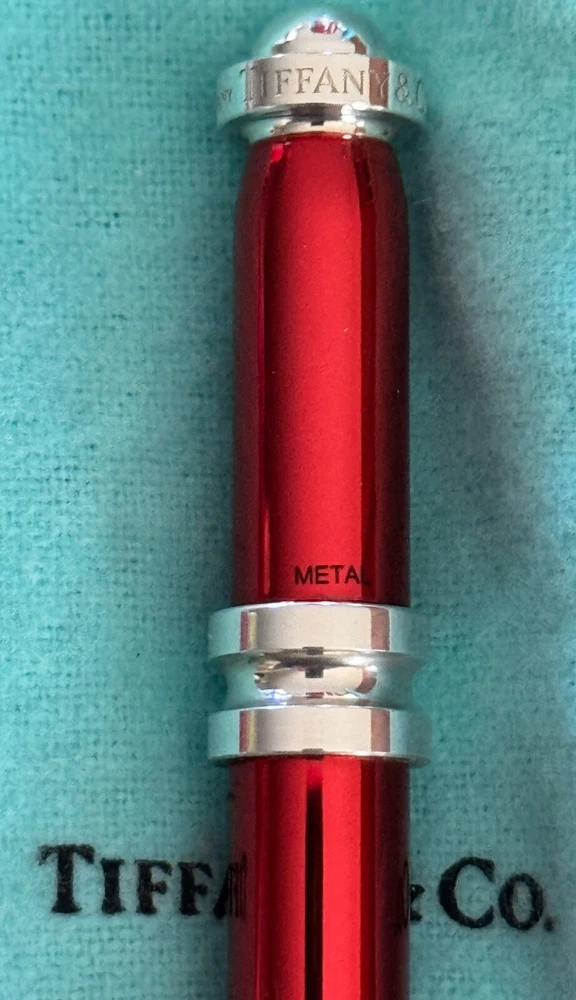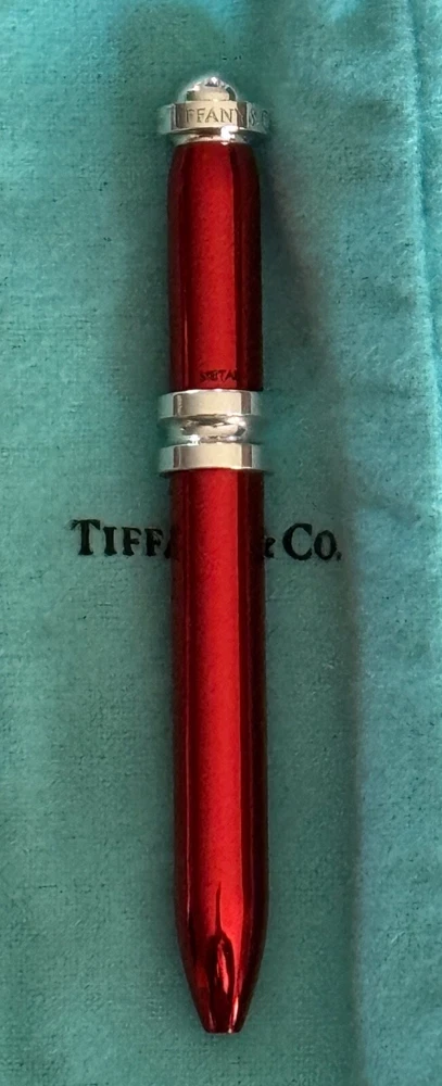 Tiffany & Co. Paloma Picasso Groove Ladies Purse Pen. Ballpoint. Sterling Silver 925 Trim with Red color metal body. Comes with box & pouch. All Our Tiffany & Co. Items are Authentic.