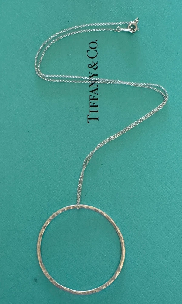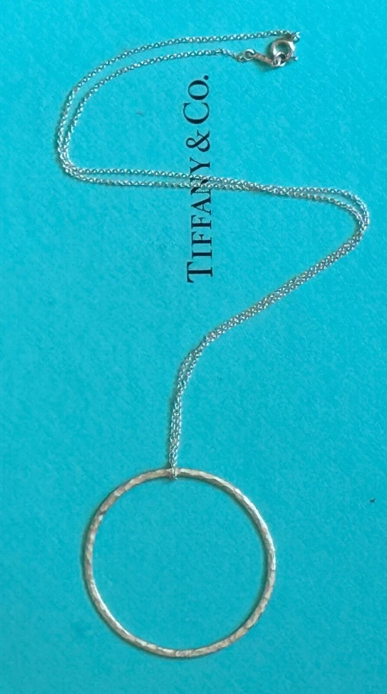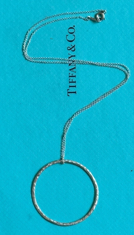 Tiffany & Co. Paloma Picasso Hammered Circle Pendant & 16" Necklace. Sterling Silver 925. No box or pouch. All Our Tiffany & Co. Items are Authentic.