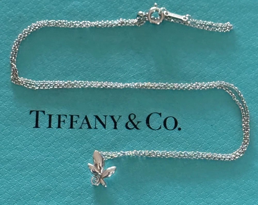 Tiffany & Co. Paloma Picasso Olive Leaf Pendant & Necklace. Sterling Silver 925. No box or pouch. All Our Tiffany & Co. Items are Authentic.