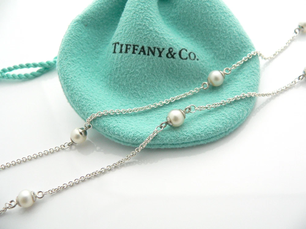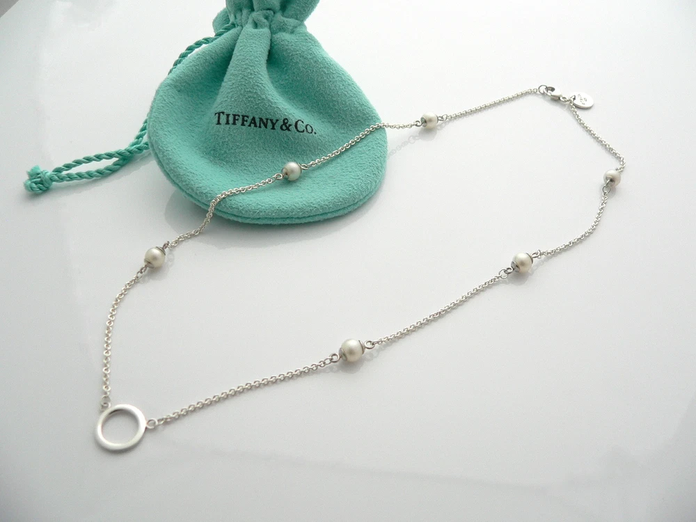 Tiffany & Co Pearls by the Yard Necklace Circle Pendant Chain Silver Gift Love