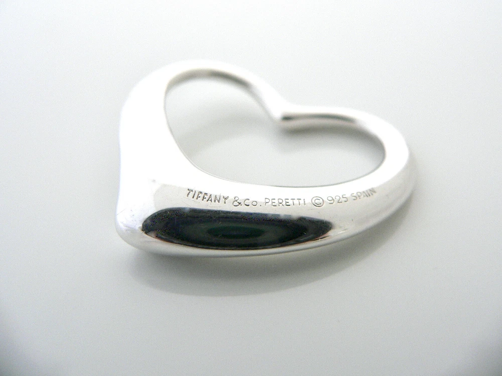 Overview: Offered for sale is a quintessential and awesome statement Tiffany piece. Whether you are just starting your Tiffany collection or are thinking of adding another outstanding piece, this one is perfect for you. Elsa Peretti’s Large Open Heart pendant is a classic that will stand out and never go out of style. It will most certainly be a piece that you will turn to over and over again, so it is great value for your money! Just add it to an existing chain or silk cord and voila! Instant Tiffany Style! :) It looks perfect worn alone or layered with your other pieces, and is an awesome statement piece! It is a wonderful charm that fits a lifestyle on the go and can be worn to almost any occasion! It is simple, elegant, and classic all rolled into one. Imagine the piece with your professional office attire ... Now imagine it with jeans or weekend wear ... Perfect! The item is very comfortable to wear, and is in excellent condition. As always, the item is fully hallmarked and guaranteed to be 100% authentic. Wonderful present for yourself or anyone you love! Will surely delight! Particulars: Size & Measurements: The pendant is a tad over 1.4 inches at its widest ends. Metal & Hallmarks: Tiffany & Co. / Peretti / 925 / Spain Solid 925 sterling silver Please check out my other unique and interesting Tiffany items on sale.