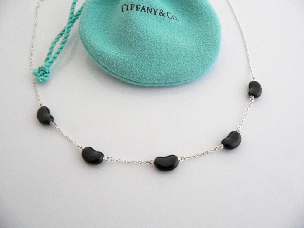 Time to show off your awesome Tiffany necklace! Offered for sale is a wonderful and rare Tiffany classic. Whether you are just starting your Tiffany collection or are thinking of adding another piece, this one is perfect for you. Tiffany & Co. Elsa Peretti’s 5 Five Black Jade Bean necklace is a Tiffany classic that will never go out of style. It will most certainly be a piece that you will turn to over and over again, so it is great value for your money! It is a wonderful necklace that fits a lifestyle on the go -- it can be worn to almost any occasion! It is versatile, elegant, and classic all rolled into one necklace. Imagine the piece with your professional office attire ... Now imagine it with jeans or weekend wear ... Perfect! The item is very comfortable to wear, and is in excellent / mint condition - never been used! No longer in production, it is perfect for the collector! As always, the piece fully hallmarked and guaranteed to be 100% authentic. It will come with its Tiffany pouch as shown! Perfect and ready for gifting! Wonderful present for yourself or someone you love! :) Particulars: Size & Measurements: The necklace is 16.5 inches from end to end. Metal & Hallmarks: Tiffany & Co. / Peretti / 925 / Spain Solid 925 sterling silver and Black Jade Gemstones Please check out my other unique and interesting Tiffany items on sale.
