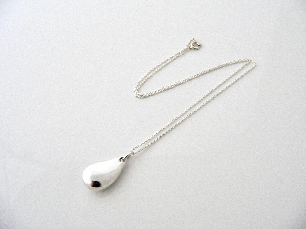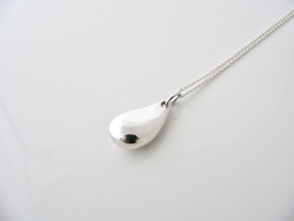 Overview: Offered for sale is a wonderful Tiffany classic. Whether you are just starting your Tiffany collection or are thinking of adding another piece, this one is perfect for you. Tiffany & Co.'s Sterling Silver Large Teardrop necklace is a Tiffany classic that will never go out of style. It will most certainly be a piece that you will turn to over and over again, so it is great value for your money! It is a wonderful necklace that fits a lifestyle on the go -- the necklace can be worn to almost any occasion! It is simple, elegant, and classic all rolled into one necklace. Imagine the piece with your professional office attire ... Now imagine it with jeans or weekend wear ... Perfect! As always, the item is fully hallmarked and guaranteed to be 100% authentic. Wonderful present for yourself or anyone you love! Will surely delight! Particulars: Size & Measurements: The necklace is 16.5 inches from end to end. Metal & Hallmarks: Tiffany & Co. / Peretti / Sterling Solid 925 sterling silver Please check out my other unique and interesting Tiffany items on sale.