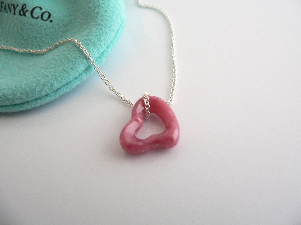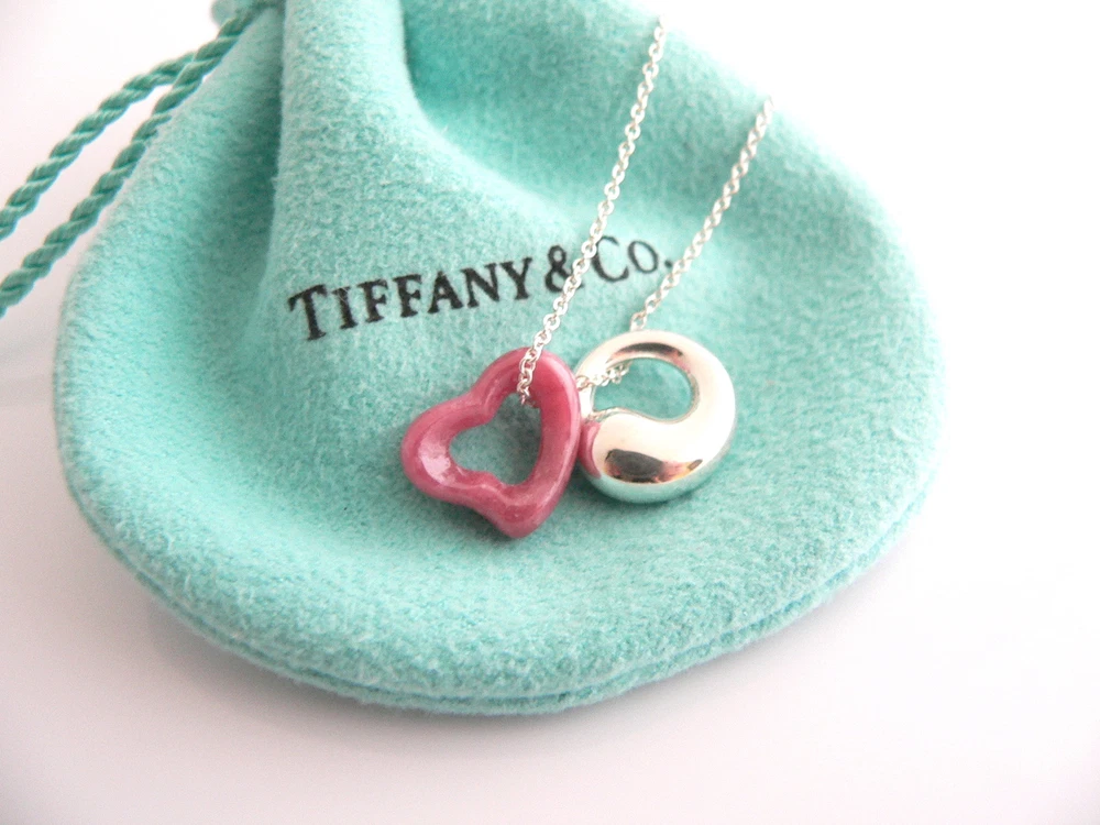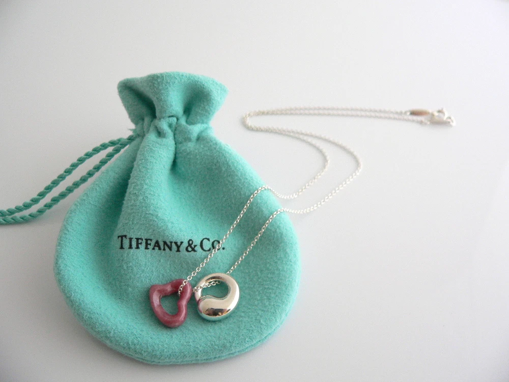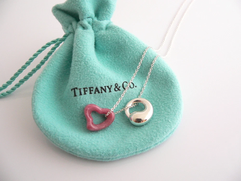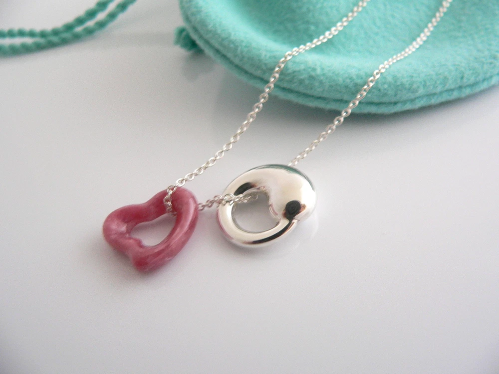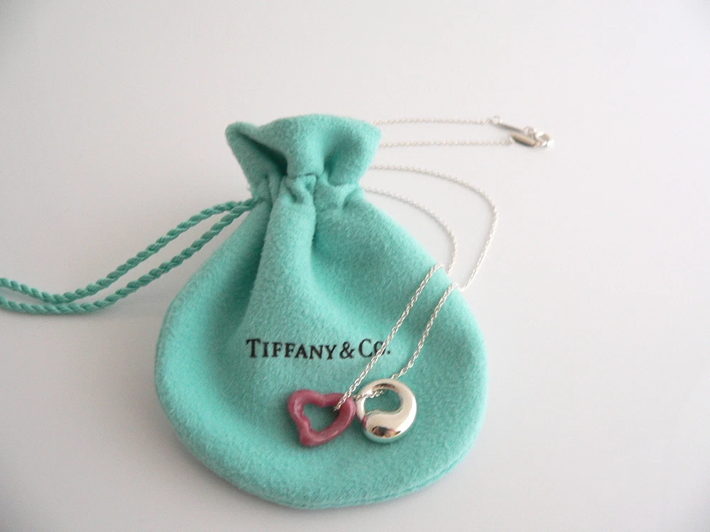Overview: Why settle for one - when you can have two wonderful Tiffany & Co classics! Whether you are just starting your Tiffany collection or are thinking of adding another piece, this one is perfect for you. Elsa Peretti’s Pink Rhodonite Heart charm and Sterling Silver Eternal Circle necklace is a Tiffany classic that will never go out of style. It will most certainly be a piece that you will turn to over and over again, so it is great value for your money! Because you have two pendants, it adds so much more to the versatility of the piece ... You can use the Pink Rhodonite pendant alone, the Silver Eternal Circle pendant by itself, or combine them both ... for a different look each time! How cool is that?! :) It is a wonderful necklace that fits a lifestyle on the go -- the necklace can be worn to almost any occasion! It is simple, elegant, and classic all rolled into one necklace. Imagine the piece with your professional office attire ... Now imagine it with jeans or weekend wear ... Perfect! The item is very comfortable to wear, and is in excellent / mint condition. No longer in production, the piece is perfect for the Tiffany collector. As always, the item is guaranteed to be 100% authentic. It will come with its Tiffany pouch as shown! Perfect and ready for gifting! Wonderful present for yourself or anyone you love! Will surely delight! Particulars: Size & Measurements: The chain is 16 inches from end to end. The Eternal Circle pendant is a tad over 0.5 inches in diameter. The Pink Rhodonite Heart charm is approx. 0.5 inches at its widest ends. Metal & Hallmarks: Tiffany & Co. / Peretti / 925 / Spain Solid 925 sterling silver and gemstones Please check out my other unique and interesting Tiffany items on sale.