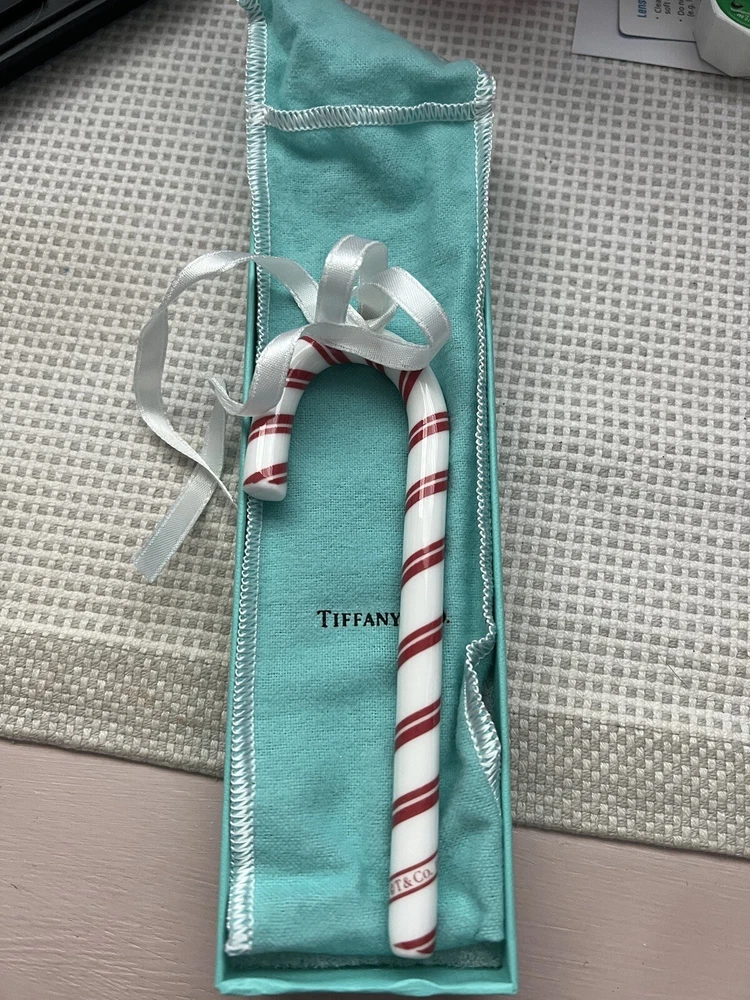 Add a touch of elegance to your Christmas decor with this beautiful handmade glass ornament from Tiffany & Co. The red and white stripe pattern, candy cane shape, and medium size make it the perfect addition to your tree. This artist-designed piece features hand-blown glass, making it a unique and original item for collectors. The ornament comes from the Tiffany & Co. brand and has no vintage or reproduction features. It includes only one item and is part of the Ornaments collection. Celebrate the Christmas season with this beautiful decoration that will surely bring joy and color to your home.