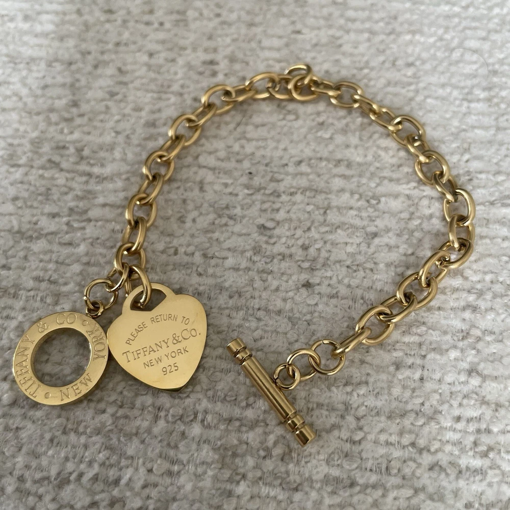 Tiffany & Co. Return To Tiffany Heart Bracelet In gold. Reworked pendant from an old piece of mine. Great condition gold color replacement chain.