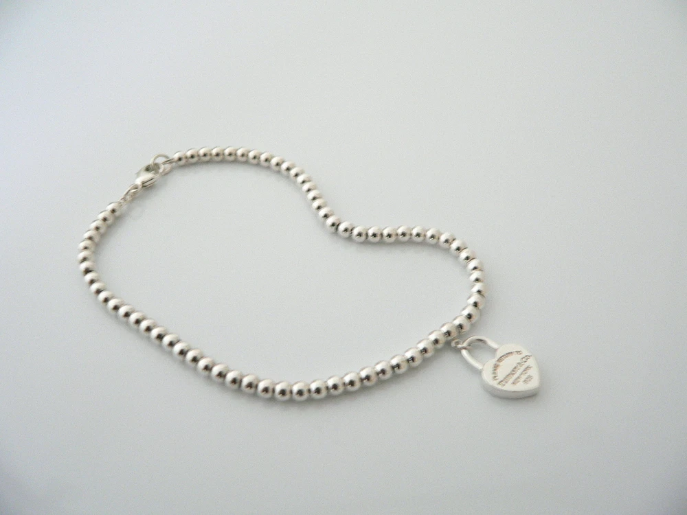 Overview: Offered for sale is a wonderful Tiffany classic - in a rare longer (and very hard to find) length of 7.25 inches. Whether you are just starting your Tiffany collection or are thinking of adding another piece, this one is perfect for you. This Mini Heart Padlock Return to Tiffany & Co. Silver Ball / Bead bracelet is a Tiffany classic that will never go out of style. The piece makes a "Tiffany" statement in its own subtle/simple way. It will most certainly be a piece that you will turn to over and over again, making it great value for your money. It is a wonderful bracelet that fits a lifestyle on the go -- the piece can be worn to almost any occasion! It is simple, elegant, and classic all rolled into one. Imagine the piece with your professional office attire ... Now imagine it with jeans or weekend wear ... Very cool in every way! As always, the item is fully hallmarked and guaranteed to be 100% authentic. Wonderful present for yourself or anyone you love! Will surely delight! Particulars: Size & Measurements: The bracelet is approx. 7.25 inches from end to end. Rare and hard to find longer length! Metal & Hallmarks: Return to Tiffany & Co. / 925 Solid 925 sterling silver Please check out my other unique and interesting Tiffany items on sale.