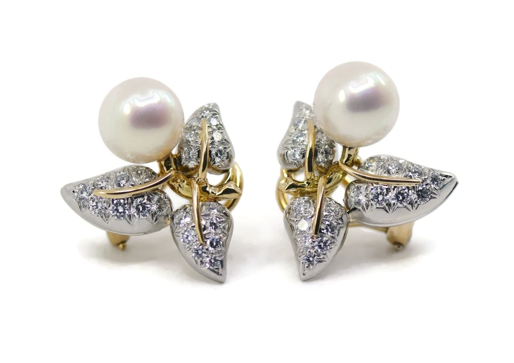 TIFFANY & CO SCHLUMBERGER DIAMOND PEARL 18K YELLOW GOLD EARRINGS SIZE:18MM WEIGHT:15.5 GRAMS SKU:12-24/7 100% AUTHENTIC WITH POUCH