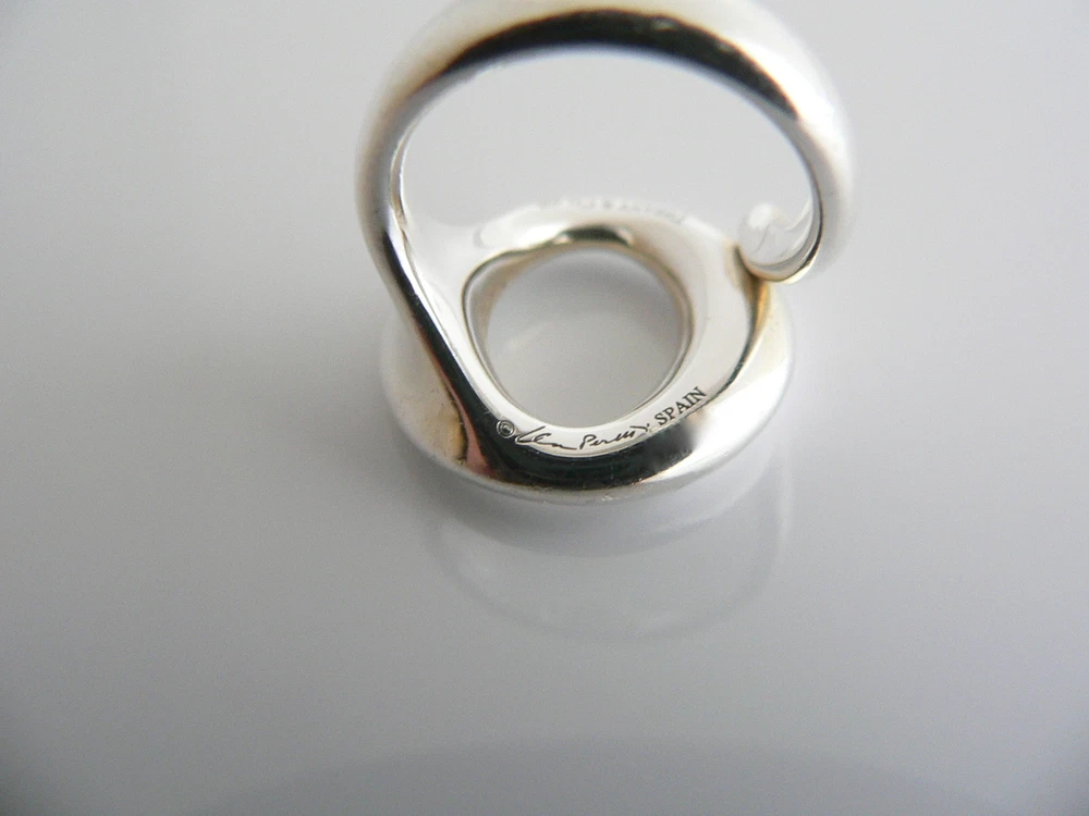 Overview: Offered for sale is a very pretty and modern Tiffany and Co. Sterling Silver Peretti Sevillana ring. The ring is substantial enough to be worn on its own, and makes a great statement piece without going over the top. Looks very feminine and pretty on the fingers, this ring is surely one that you will turn to over and over again. It is elegant, very versatile, and extremely comfortable to wear. Perfect ring to start or add to your Tiffany collection. The ring is fully hallmarked and is guaranteed to be 100% authentic. Wonderful present for yourself or anyone you love! Will surely delight! Particulars: Size & Measurements: The ring is a size 5 Metal & Hallmarks: Tiffany & Co. / 925 / Elsa Peretti / Spain Solid 925 sterling silver