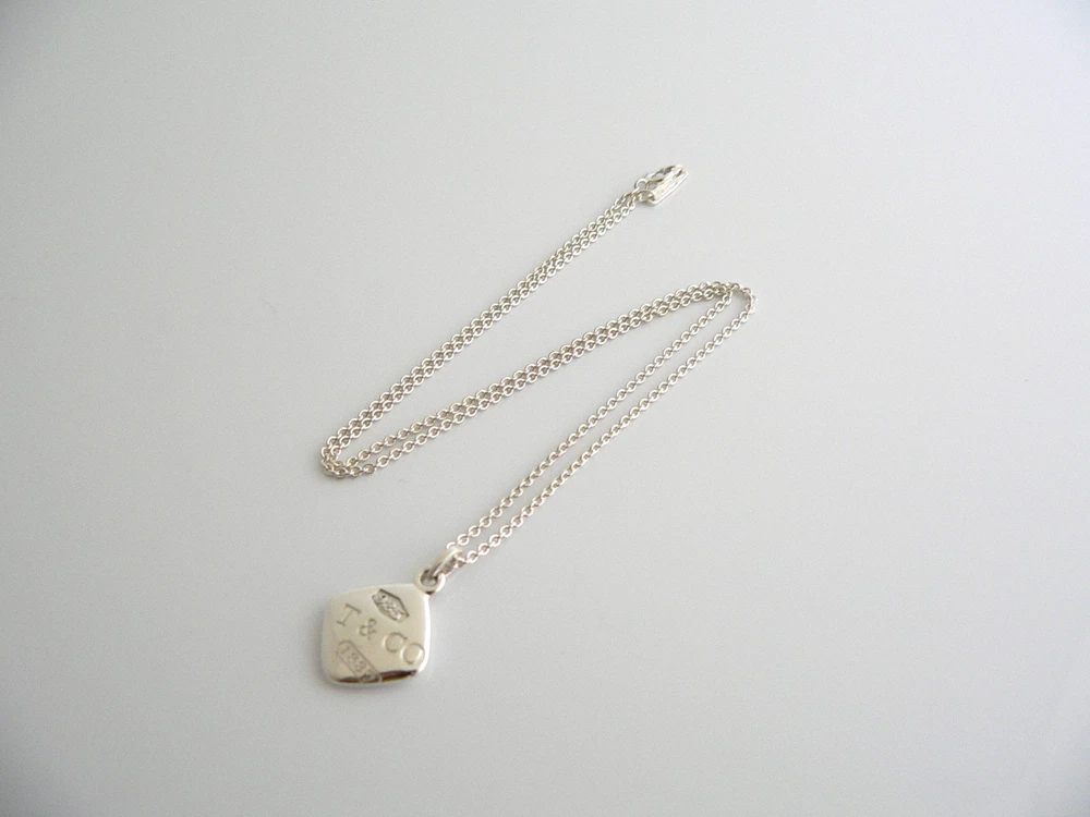 Overview: Here is a classic Tiffany necklace that you will surely wear over and over again! Offered for sale is a Tiffany & Co. 1837 Silver Square Pendant necklace. The piece is crafted from bright and substantial Tiffany silver. It is a wonderful necklace that fits a lifestyle on the go -- the necklace can be worn to almost any occasion! It is simple, elegant, and classic all rolled into one necklace. Imagine the piece with your professional office attire ... Now imagine it with jeans or weekend wear ... Perfect! A simple and yet very versatile piece indeed. The item is very comfortable to wear, and is in excellent condition. It is a gorgeous Tiffany piece to start or add to your collection. The item is fully hallmarked and guaranteed to be 100% authentic. Wonderful present for yourself or anyone you love! Will surely delight! Particulars: Size & Measurements: The pendant is approx. 0.5 inches. The chain is approx. 16 inches from end to end. Metal & Hallmarks: Tiffany & Co. / 925 / Italy (on chain) 1837 / T & Co / 925 (on pendant) Solid 925 sterling silver Please check out my other unique and interesting Tiffany items on sale.