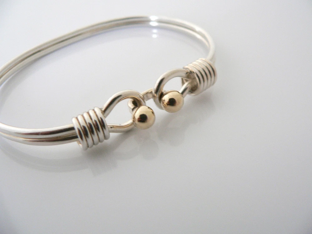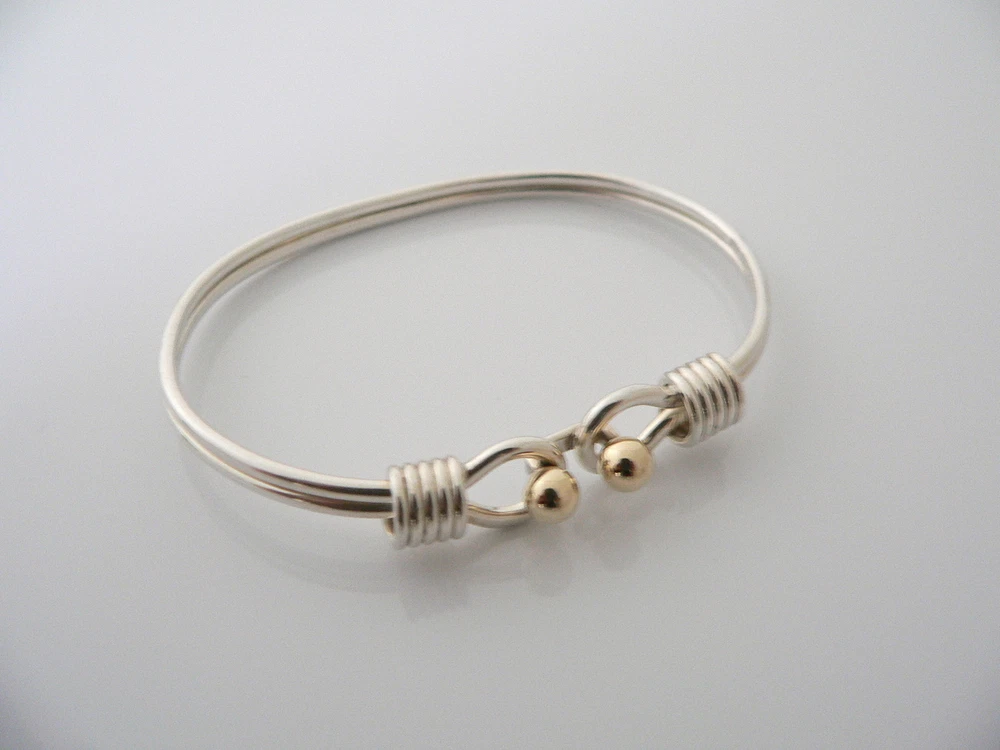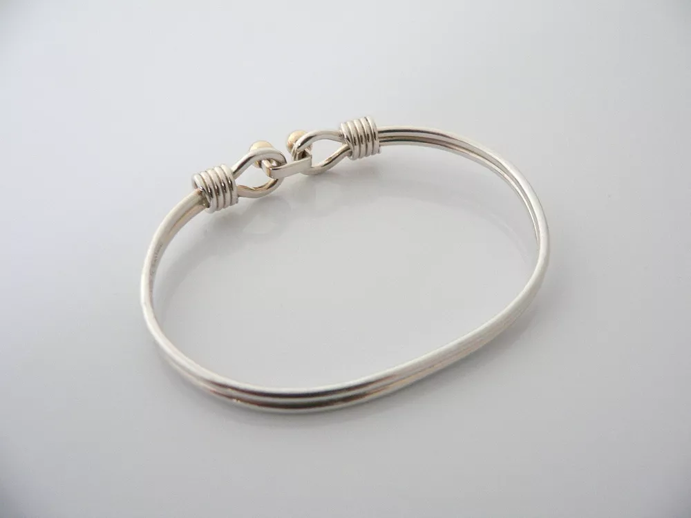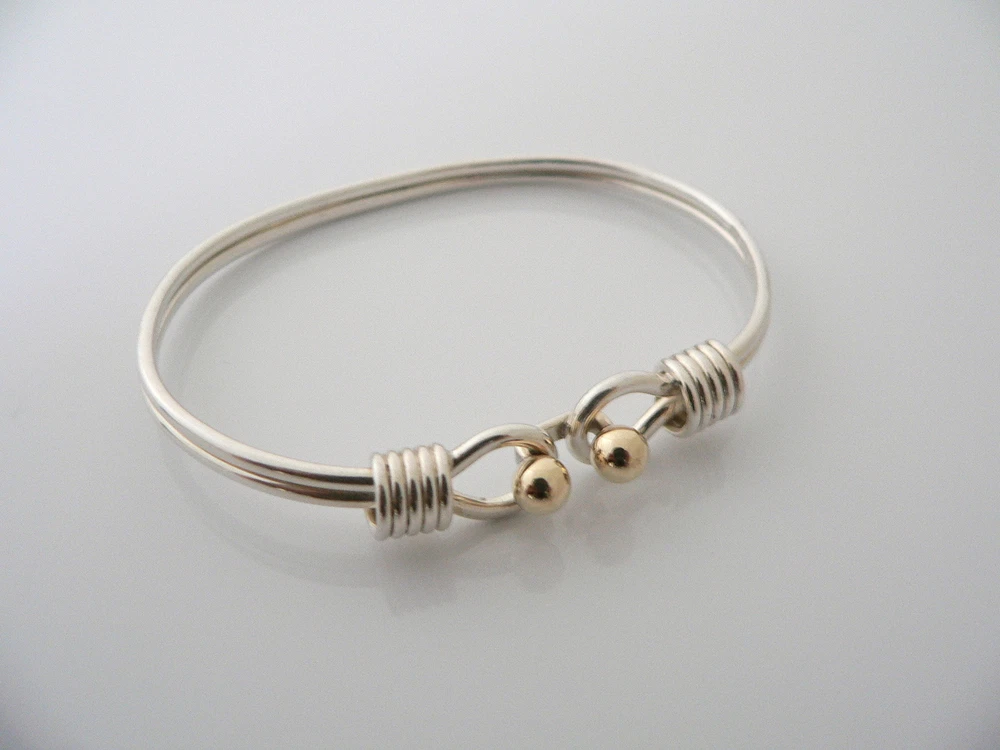 Tiffany & Co Silver 18K Gold Hook Bangle Ball Bracelet Gift Love Statement