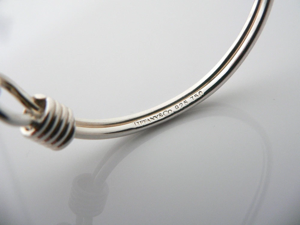 Brand: Tiffany & Co. Style: Bangle Color: Silver Metal Purity: 18k Metal: Silver Material: Sterling Silver Theme: Family & Friends, Holiday, Letters, Numbers & Words, Love, Luck Main Stone: No Stone Base Metal: Sterling Silver 925 Type: Bracelet Main Stone Color: Silver Collection: Tiffany & Co. Hearts Country of Origin: United States
