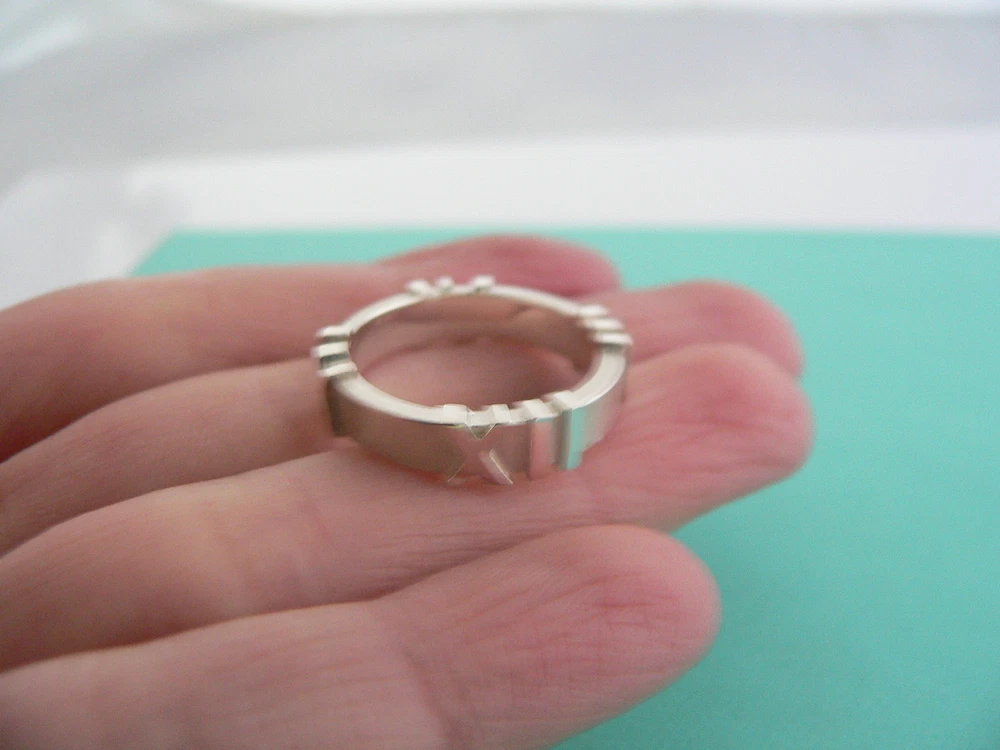 Overview: Offered for sale is a wonderful and gorgeous and mint Tiffany & Co. Sterling Silver Atlas ring. Definitely a Tiffany piece that you will get your money's value for. It works perfectly with pretty much any attire your put on, AND is an awesome statement piece. It is the perfect piece that fits a lifestyle on the go -- the ring can be worn to pretty much any occasion! It is simple, elegant, and classic all rolled into one. Imagine wearing the ring with your office attire... now imagine it with jeans or weekend wear ... Perfect anytime! No longer in production, it is perfect for the collector. Perfect Tiffany piece to start or add to your collection. As always, the item is hallmarked and is guaranteed to be 100% authentic. Wonderful present for yourself or anyone you love! Will surely delight! Particulars: Size & Measurements: The ring is a size 6 Metal & Hallmarks: 2006 / Atlas / Tiffany & Co. / 925 Solid 925 sterling silver Please check out my other unique and interesting Tiffany items on sale.