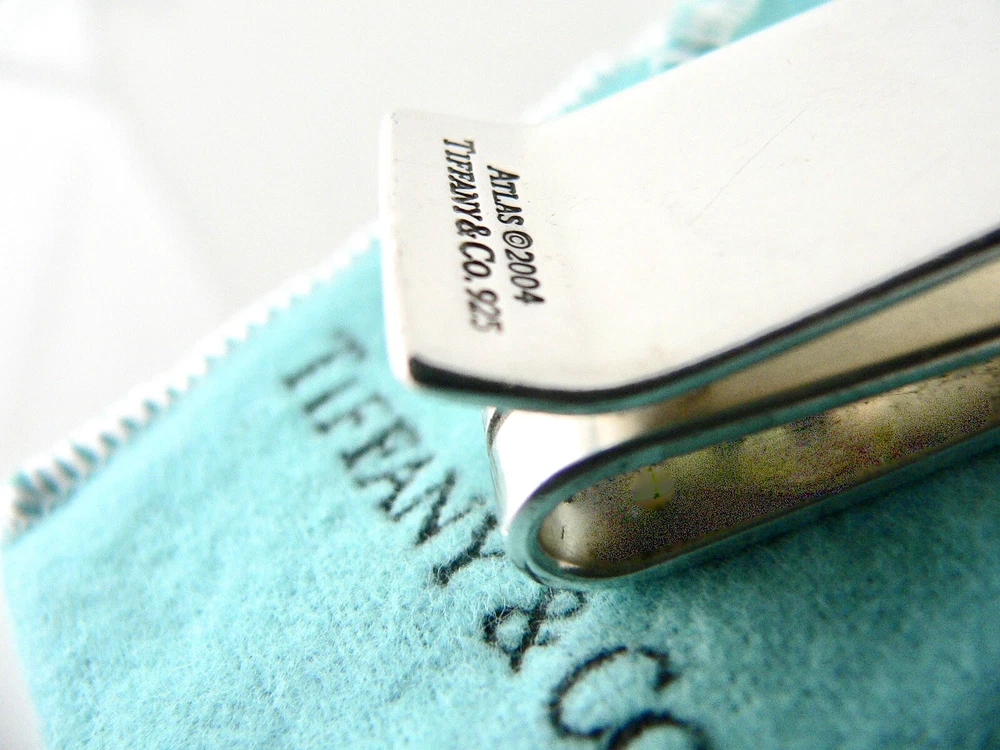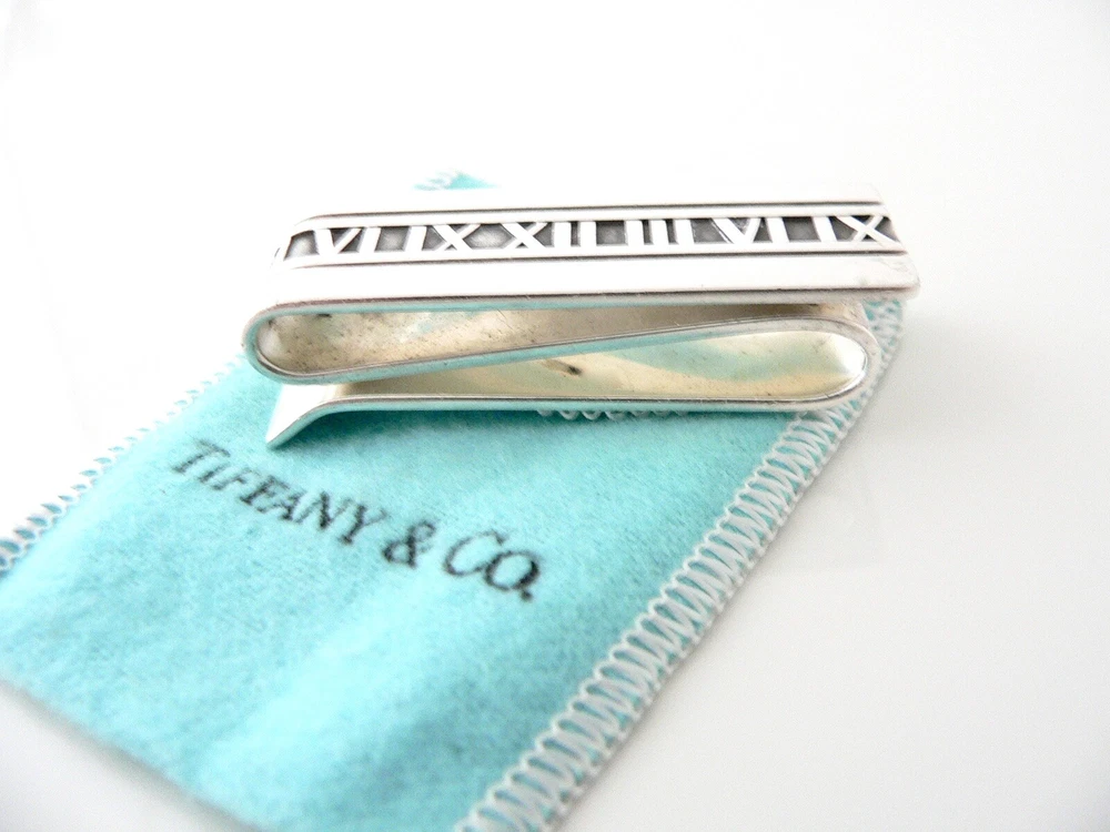 Overview: Offered for sale is a very rare Tiffany and Co. Sterling Silver Atlas Double Sided Money Clip. Super practical and classic Tiffany piece! It's double sided so one side can hold bills and the other can hold credit cards!It is unengraved and thus could be personalized if you choose to do so. This item will certainly be something that will be used on a daily basis. Perfect surprise for that someone special! No longer in production, the piece is perfect for the collector! The piece is fully hallmarked and is guaranteed to be 100% authentic. Wonderful present for yourself or anyone you love! Will surely delight! It will come with its Tiffany pouch as shown! Perfect and ready for gifting! Particulars: Metal & Hallmarks: 2004 / Atlas / Tiffany & Co. / 925 Solid 925 sterling silver Please check out my other unique and interesting Tiffany items on sale.