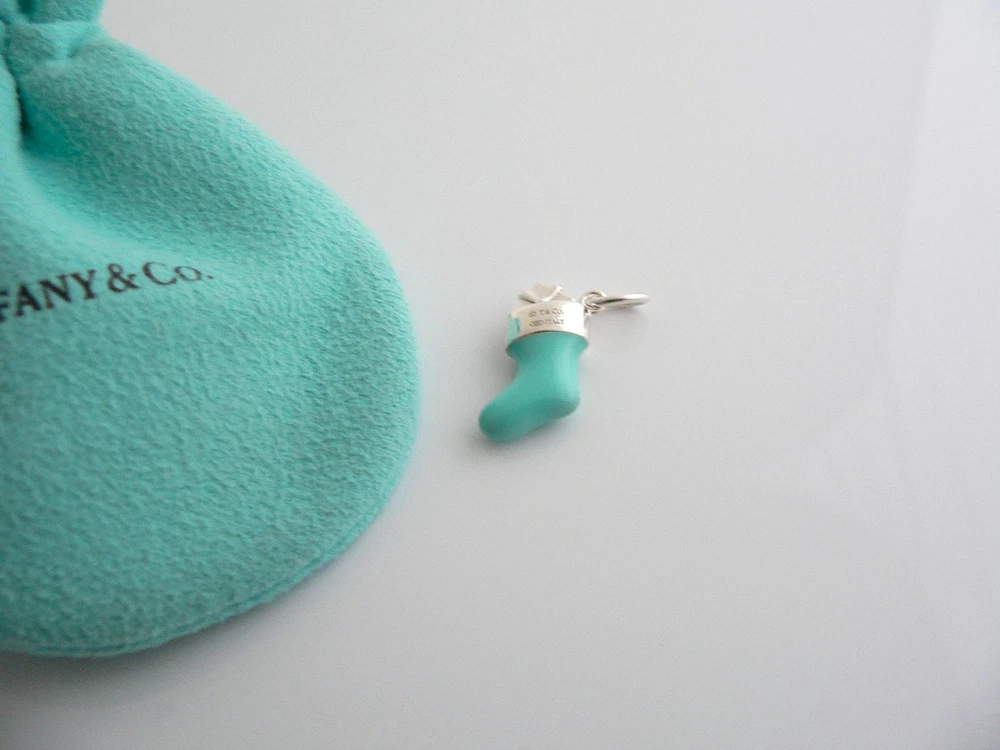 Overview: Here is a gift that she will surely adore! It is THE classic Tiffany piece - super pretty, stylish, and super pretty! :) This Stocking (adorned with Gifts :)) will always give that special person warm thoughts whenever she thinks of you :) Offered for sale is a wonderful Tiffany & Co. Sterling Silver & "Tiffany" Blue enamel Stocking charm. Just attach it to an existing chain or bracelet that you already have and voila! - Instant Tiffany style! :) I am 100% sure that this is one charm that will be used a lot! Great conversation piece as well - in case you run out of small talk at a cocktail party. The item is a wonderful piece that is perfect for the collector. The item is in mint condition (And has never been used). Perfect little present or treat for anyone! As always, it is guaranteed to be 100% authentic. Everyone needs a signature Tiffany piece! Here is the perfect one just for you. Wonderful present for yourself or anyone you love! Will surely delight! Particulars: Metal & Hallmarks: T & Co / 925 / Italy Solid 925 sterling silver Please check out my other unique and interesting Tiffany items on sale.