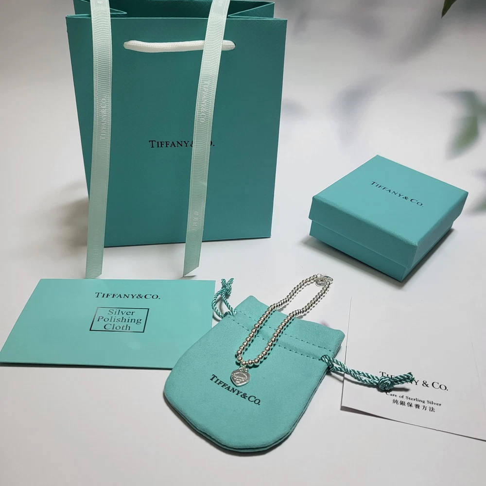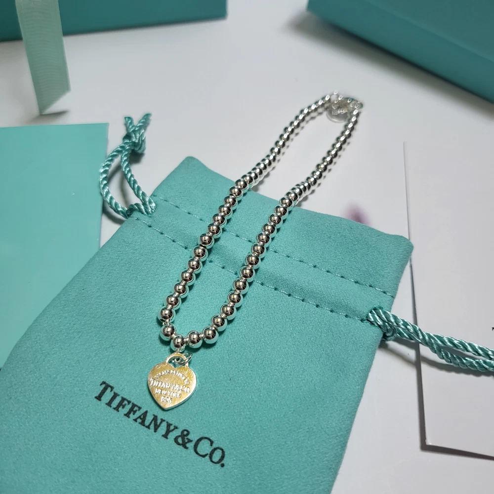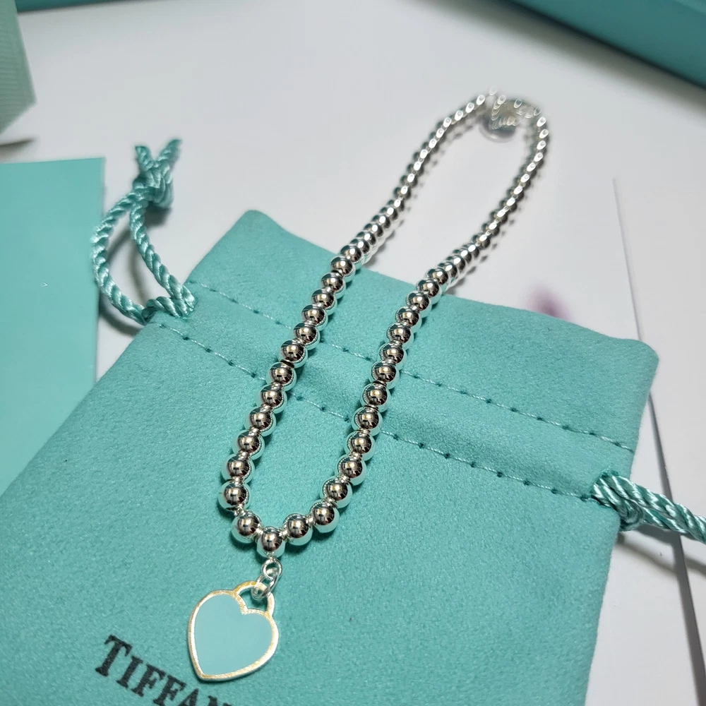 Tiffany & Co. Silver Blue Heart Ball Chain Bracelet With Box