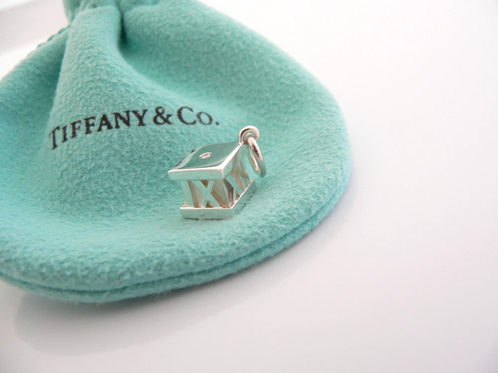 Overview: Offered for sale is a wonderful and mint Tiffany and Co. Silver and Diamond Atlas / Roman Numeral Cube charm. The piece is crafted from bright and substantial Tiffany silver, accented with a sparkling Diamond! Just attach it to an existing chain or cord that you already have and voila! - Instant Tiffany style! :) I am 100% sure that this is one charm that will be used a lot! Great conversation piece as well - in case you run out of small talk at a cocktail party. The item is a wonderful piece that is perfect for the collector. The item is in excellent / mint condition. Perfect little present or treat for anyone! As always, it is guaranteed to be 100% authentic. It will come wit h its Tiffany pouch as shown! Perfect and ready for gifting! Wonderful present for yourself or anyone you love! Will surely delight! Particulars: Metal & Hallmarks: Atlas / T & Co / 925 / Italy Solid 925 sterling silver Please check out my other unique and interesting Tiffany items on sale.