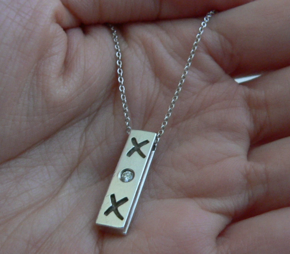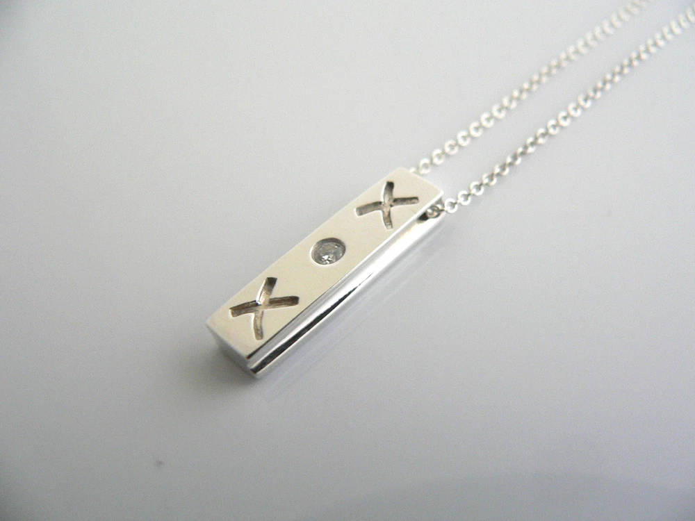 Guys, listen up! Show her your love without saying a word ... believe me, she will know with this awesome piece! :) Offered for sale is a gorgeous Tiffany & Co. Paloma Picasso Sterling Silver Hugs & Kisses Diamond necklace. The necklace is a wonderful piece that is simple, elegant, and classic all rolled into one. It works perfectly with pretty much any attire your put on, AND adds a nice feminine touch to it. Hanging from its bright Tiffany silver curb chain is a bar pendant that has two "X"s (i.e., kisses) and a gorgeous diamond center (i.e.; "hug" :)) that sparkles nicely as it catches the light! It is a wonderful necklace that fits a lifestyle on the go -- the necklace can be worn to pretty much any occasion! Imagine the piece with your professional office attire ... Now imagine it with jeans or weekend wear ... Perfect! The item is very comfortable to wear, and is in very good condition. It is a perfect Tiffany piece to start or add to your collection. As always, the item is hallmarked and guaranteed to be 100% authentic. Wonderful present for yourself or anyone you love! Will surely delight! Particulars: Size & Measurements: The chain is approx. 16.5 inches from end to end. The bar pendant is 0.75 inches long. Metal & Hallmarks: T & Co. / Paloma Picasso / 925 (on chain clasp) Tiffany & Co. / Paloma Picasso / 925 (back of pendant) Solid 925 sterling silver Please check out my other unique and interesting Tiffany items on sale.