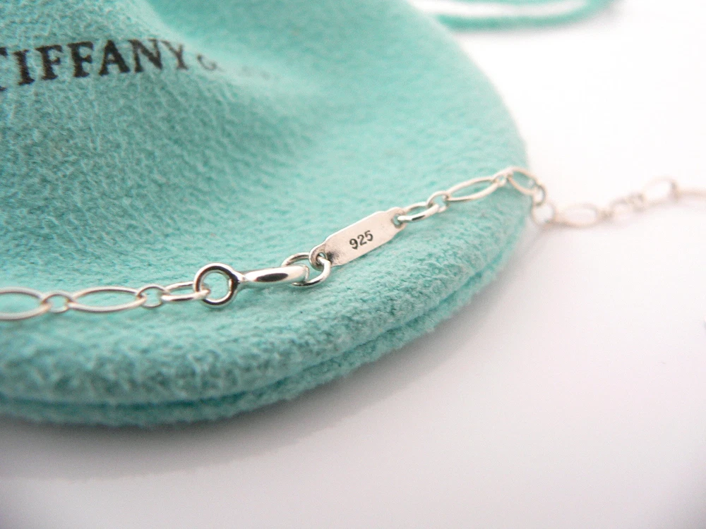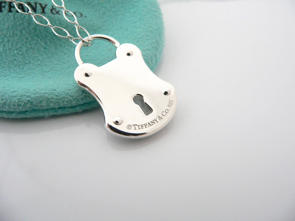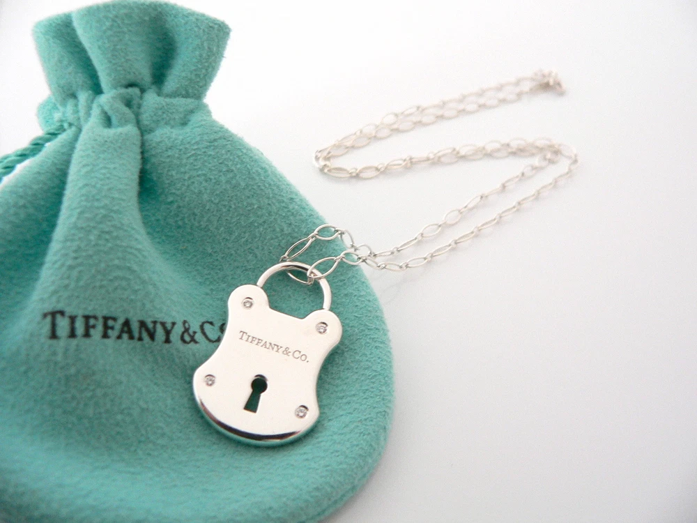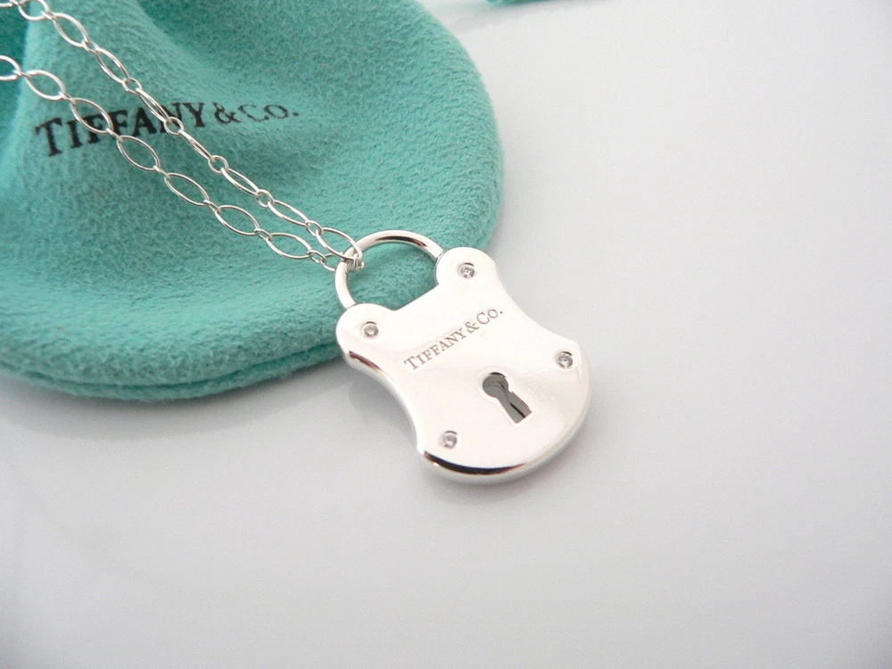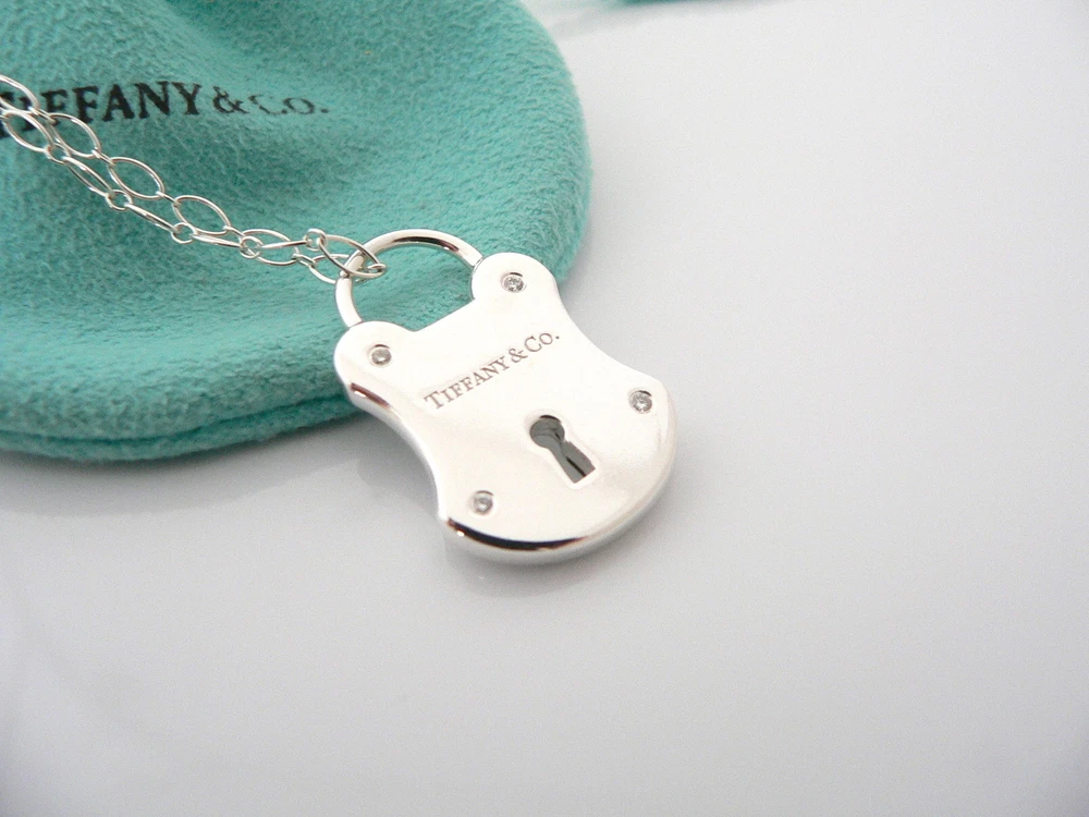 Overview: Here is a gift that she will surely adore! Offered for sale is a wonderful Tiffany & Co. Sterling Silver & Diamonds Rectangle Locks charm necklace. Hanging from its gorgeous Tiffany & Co Oval Link chain is a fabulous and very pretty Rectangle Locks charm accented with 4 Super Sparkly Diamonds! I am 100% sure that this is one necklace that will be used a lot! Great conversation piece as well - in case you run out of small talk at a cocktail party. The item is a wonderful piece that is no longer in production - and is thus perfect for the collector. The item is very comfortable to wear, and is in excellent condition. No longer in production, it is perfect for the collector! Perfect little present or treat for anyone! It is fully hallmarked on both pendant and chain. As always, it is guaranteed to be 100% authentic. The necklace will come with its Tiffany pouch as shown! Perfect and ready for gifting! Wonderful present for yourself or anyone you love! Will surely delight! Particulars: The necklace is 16 inches from end to end. The Diamond Locks charm is approx 1.1 inches long, and is 0.75 inches at its widest ends. Metal & Hallmarks: Tiffany & Co. / 925 (on both Locks charm and chain clasp) Solid 925 Sterling Silver and 4 Sparkling Diamonds Please check out my other unique and interesting Tiffany items on sale.
