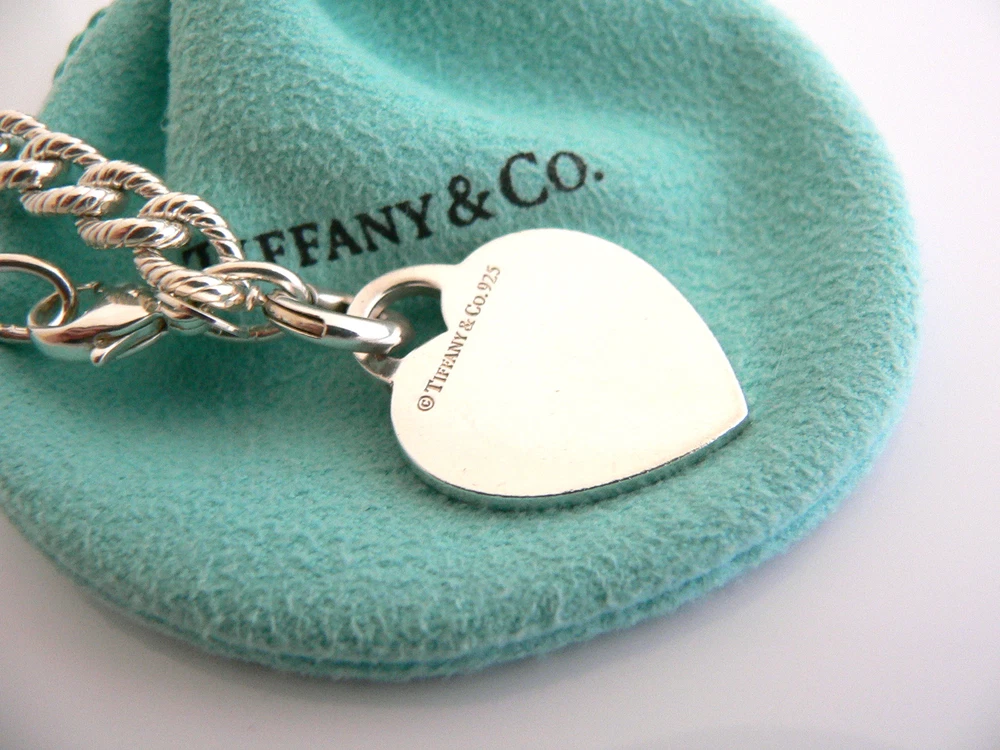 Offered for sale is a wonderful and rare Tiffany and Co. Sterling Silver "Happy Anniversary" Heart Charm Textured Cable bracelet. The piece is made from substantial and bright Tiffany silver, and yet retains a very feminine feel to it. Attached to its very substantial Tiffany & Co. Silver Textured charm bracelet is a Heart charm with "Happy Anniversary" written in beautiful script. The Heart charm is attached to a Tiffany & Co. Silver Clasp that allows it to be used on a necklace or as part of another charm bracelet! Super versatile piece! It is a classic Tiffany piece that will most certainly be a piece that you will be used over and over again, so it is great value for the money! It is a wonderful piece that fits a lifestyle on the go -- the bracelet can be worn to almost any occasion! It is versatile, elegant, and classic all rolled into one. Imagine the piece with your professional office attire ... Now imagine it with jeans or weekend wear ... Perfect! The bracelet is in very good condition. As always, the Charm bracelet, Heart charm, and Charm Clasp are fully hallmarked and guaranteed to be 100% authentic. The bracelet will come with its Tiffany pouch as shown! Perfect and ready for gifting! Wonderful present for yourself or anyone you love! Will surely delight! Particulars: Size & Measurements: The bracelet is approx. 7.5 inches from end to end. Metal & Hallmarks: Tiffany & Co. / 925 (on circular clasp of bracelet) Tiffany & Co. / 925 (on Heart charm) T & Co. / 925 (on charm clasp) Solid 925 sterling silver Please check out my other unique and interesting Tiffany items on sale.