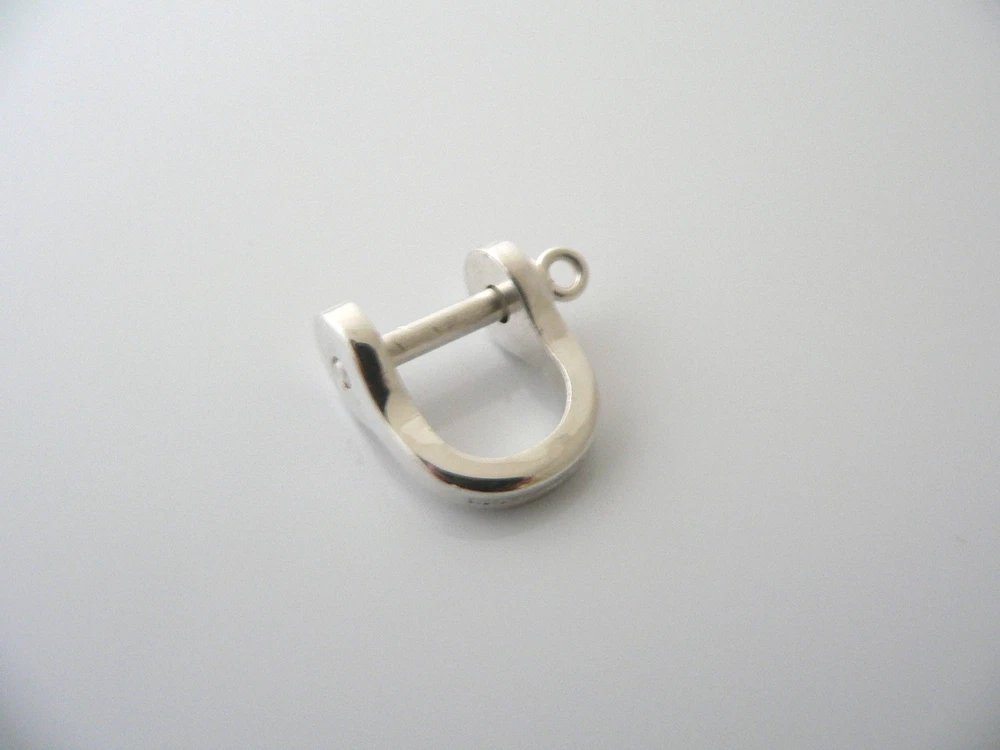 Overview: Offered for sale is a super cool Tiffany and Co. Sterling Silver Half Shackle key ring. A very well made and sturdy piece that is very rare to come by. It's special jewelry - made especially for your "keys". Great piece to securely hold all your keys. This item is also no longer in production and makes a great collector's item. A truly unique and beautiful piece to give to your keys/yourself or someone else! As always, it is guaranteed to be 100% authentic. Wonderful present for yourself or anyone you love! Will surely delight! Particulars: The key ring is approx. 0.85 inches long Metal & Hallmarks: Tiffany & Co. / Sterling (as seen in the pictures) Solid 925 sterling silver Please check out my other unique and interesting Tiffany items on sale.
