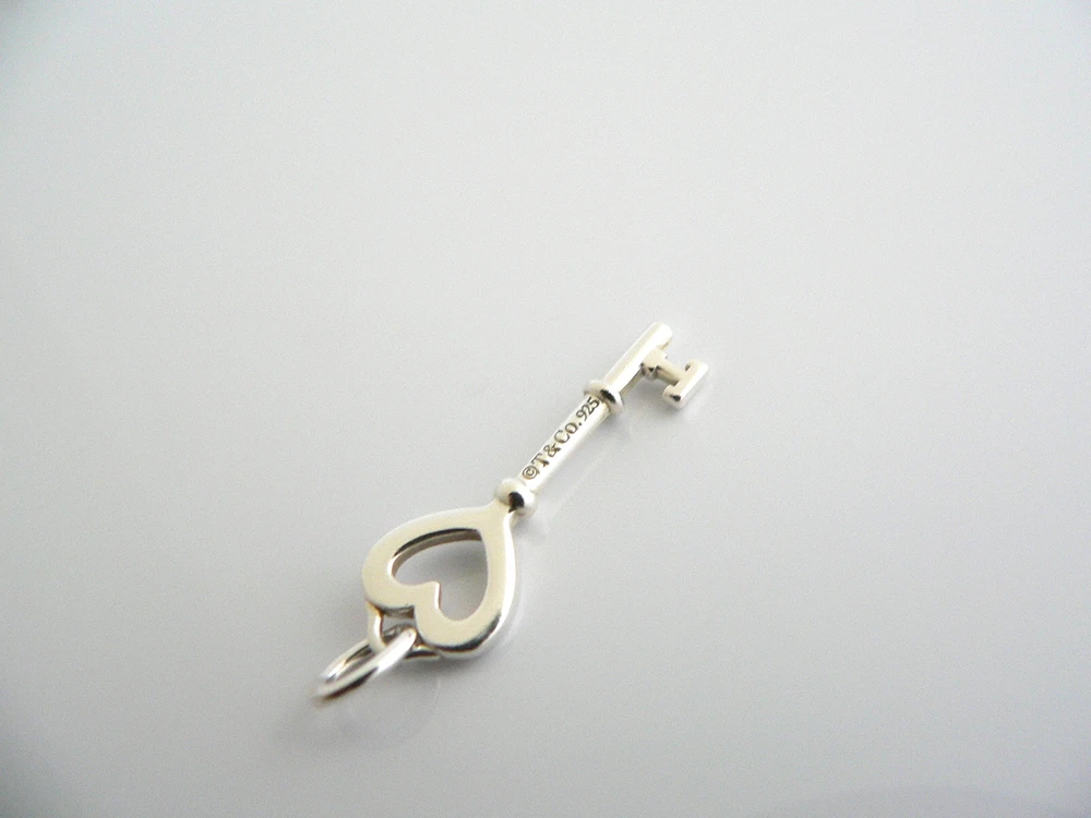 Overview: Offered for sale is a fantastic and very pretty Tiffany and Co. Sterling Silver Heart Key charm / pendant. Wonderful charm that fits a lifestyle on the go -- the piece can be worn to almost any occasion! Just add the Heart Key charm to an existing chain / silk cord / or bracelet and voila! Instant Tiffany style and elegance! :) It is classic Tiffany and yet looks extremely elegant. Perfect way to say "Here's the key to my heart :)" without ever having to say a word - believe me, she will know! :) Imagine the piece with your professional office attire ... Now imagine it with jeans or weekend wear ... Perfect in every way! The item is very comfortable to wear, and is in excellent condition . A classic Tiffany piece to start or add to your collection. The pendant and is fully hallmarked and guaranteed to be 100% authentic. Wonderful present for yourself or anyone you love! Will surely delight! Particulars: Size & Measurements: The key pendant is 1.25 inches (including bail). It is a tad over 0.4 inches at its widest ends. Metal & Hallmarks: T & Co. / 925 Solid 925 sterling silver Please check out my other unique and interesting Tiffany items on sale.
