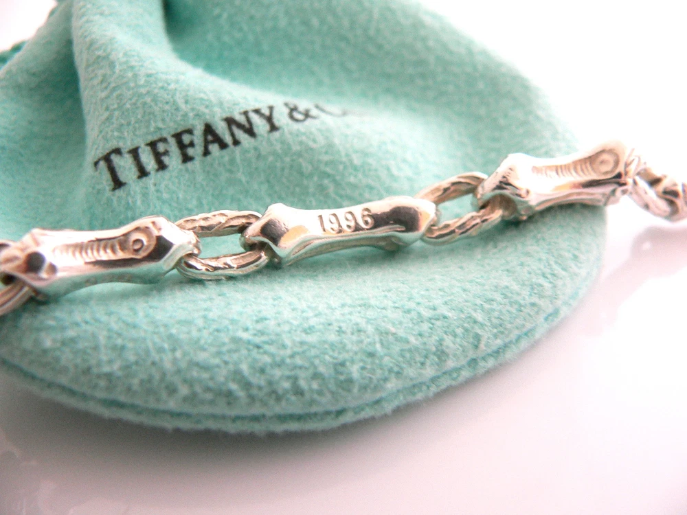 Overview: Offered for sale is a gorgeous and rare Tiffany & Co Sterling Silver Bamboo Link (19 Inch) chain necklace. Made from solid and bright Tiffany silver, yet maintains its delicate and feminine feel! Looks and feels wonderful, I am 100% positive that you will want to use it over and over again. Your friends will be fascinated by this gorgeous piece – it is almost like a work of art right on your neck! The look of the piece is simple, classic, and very elegant. The necklace is super elegant and chic; it works with pretty much anything you put on … and adds a touch of Tiffany style and pizazz to it! A perfect and rare Tiffany piece to start or add to your collection. The necklace is fully hallmarked and guaranteed to be 100% authentic. It will come with its Tiffany pouch, box, and sterling care card as shown! Perfect and ready for gifting! Wonderful present for yourself or anyone you love! Will surely delight! Particulars: Size & Measurements: The necklace is 19 inches long. Metal & Hallmarks: 1996 / T & Co. / 925 Solid 925 sterling silver Please check out my other unique and interesting Tiffany items on sale.