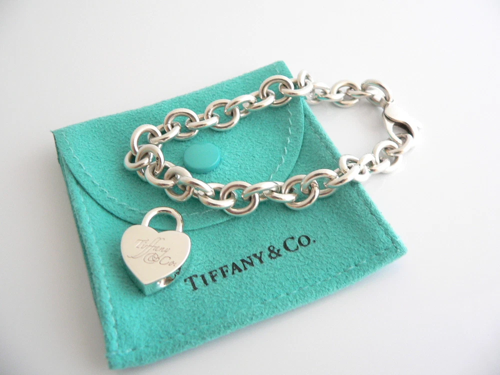 Offered for sale is a wonderful and rare Tiffany and Co. Sterling Silver Notes Heart Padlock bracelet. The piece is made from substantial and bright Tiffany silver, and yet retains a very feminine feel to it. Attached to its very substantial Tiffany Silver charm bracelet is a Heart padlock charm with "Tiffany & Co" written in beautiful script. The Notes Heart padlock charm can be removed from the bracelet, and thus can be used as a pendant on a necklace or placed on another charm bracelet! Super versatile! It is a classic Tiffany piece that will most certainly be a piece that you will be used over and over again, so it is great value for the money! It is a wonderful piece that fits a lifestyle on the go -- the bracelet can be worn to almost any occasion! It is versatile, elegant, and classic all rolled into one. Imagine the piece with your professional office attire ... Now imagine it with jeans or weekend wear ... Perfect! The bracelet is in very good to excellent condition. As always, both the charm bracelet and padlock charm are fully hallmarked and guaranteed to be 100% authentic. It will come with its Tiffany pouch as shown! Perfect and ready for gifting! Wonderful present for yourself or anyone you love! Will surely delight! Particulars: Size & Measurements: The bracelet is approx. 7.45 inches from end to end. Metal & Hallmarks: T & Co. / 925 (middle link of chain) Tiffany & Co / 925 (on padlock charm) Solid 925 sterling silver Please check out my other unique and interesting Tiffany items on sale.