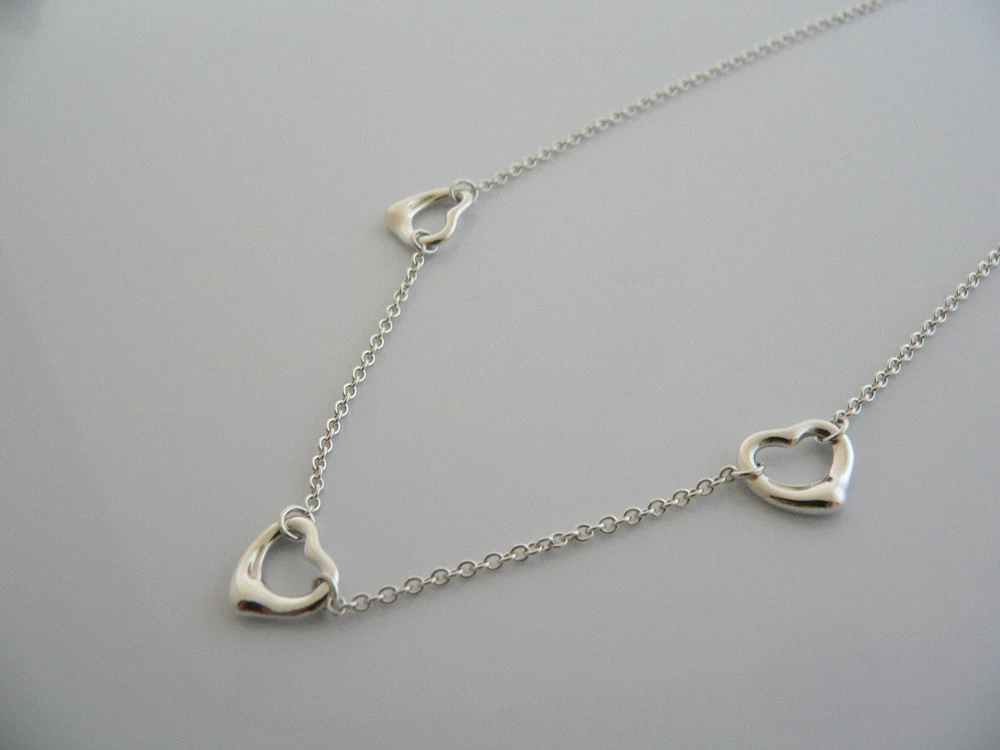 Overview: Offered for sale is a wonderful Tiffany classic. Whether you are just starting your Tiffany collection or are thinking of adding another piece, this one is perfect for you. Elsa Peretti’s 3 Open heart necklace is a Tiffany classic that will never go out of style. Perfect way to say “I love you (or I love me!) :)”. It will most certainly be a piece that you will turn to over and over again, so it is great value for your money! It is a wonderful necklace that fits a lifestyle on the go -- the necklace can be worn to almost any occasion! It is versatile, elegant, and classic all rolled into one necklace. Imagine the piece with your professional office attire ... Now imagine it with jeans or weekend wear ... Perfect! The item is very comfortable to wear, and is in excellent condition. As always, the piece fully hallmarked and guaranteed to be 100% authentic. Wonderful present for yourself or anyone you love! Will surely delight! It will come with its Tiffany pouch as shown! Perfect and ready for gifting! Particulars: Size & Measurements: The chain is approx. 16.3 inches from end to end. Metal & Hallmarks: Tiffany & Co. / Peretti / 925 / Spain Solid 925 sterling silver Please check out my other unique and interesting Tiffany items on sale.
