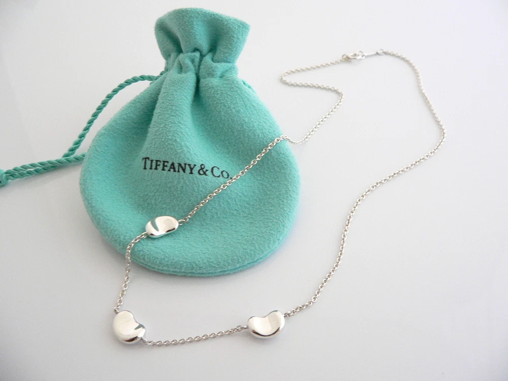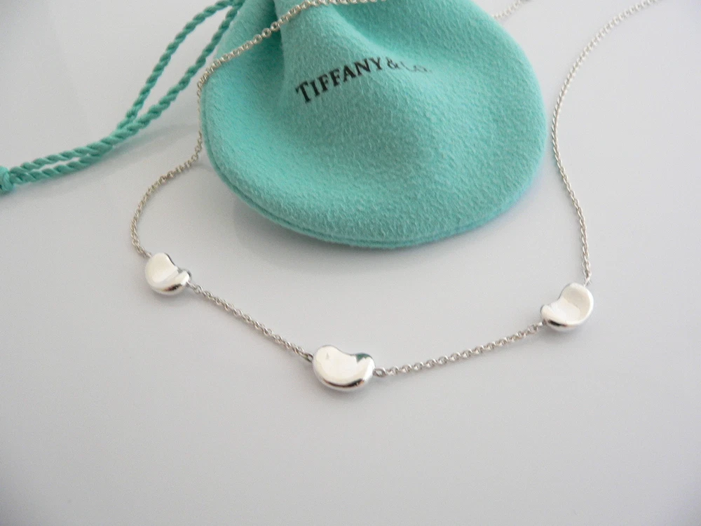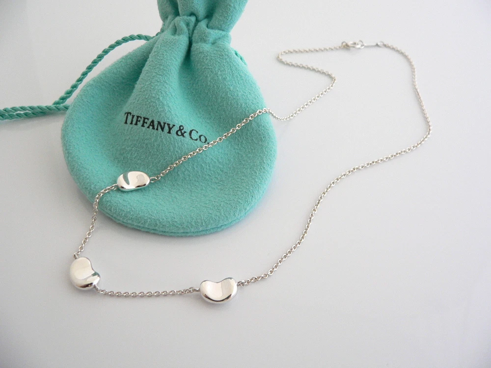 Tiffany & Co Silver Peretti 3 Three Bean Necklace Pendant Chain Charm I Love You