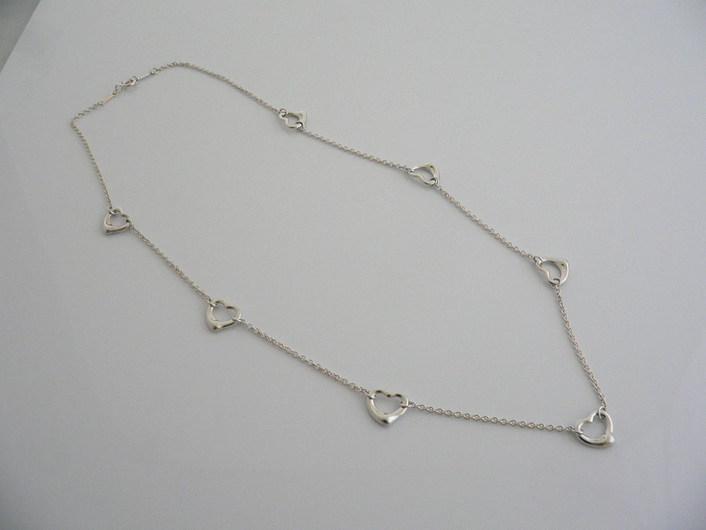 Overview: Offered for sale is a wonderful Tiffany classic. Whether you are just starting your Tiffany collection or are thinking of adding another piece, this one is perfect for you. Tiffany & Co. Elsa Peretti’s 7 Open heart necklace is a Tiffany classic that will never go out of style. Perfect way to say “I love you very much (or I love me a lot!) :)”. It will most certainly be a piece that you will turn to over and over again, so it is great value for your money! It is a wonderful necklace that fits a lifestyle on the go -- the necklace can be worn to almost any occasion! It is versatile, elegant, and classic all rolled into one necklace. Imagine the piece with your professional office attire ... Now imagine it with jeans or weekend wear ... Perfect! The item is very comfortable to wear, and is in excellent condition. No longer in production, it is perfect for the collector. As always, the piece fully hallmarked and guaranteed to be 100% authentic. Wonderful present for yourself or anyone you love! Will surely delight! Particulars: Size & Measurements: The chain is approx. 16.5 inches from end to end. Metal & Hallmarks: Tiffany & Co. / Peretti / 925 / Spain Solid 925 sterling silver Please check out my other unique and interesting Tiffany items on sale.