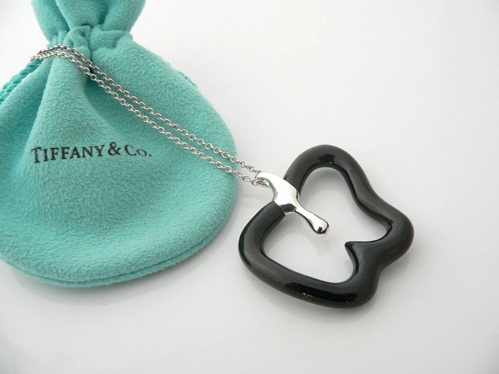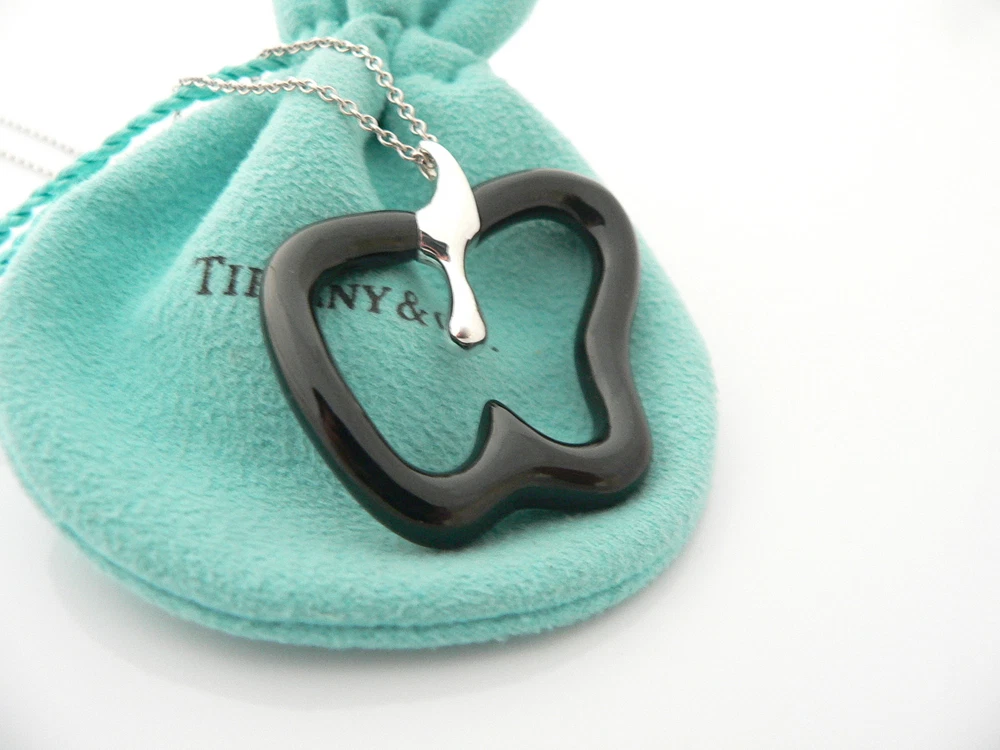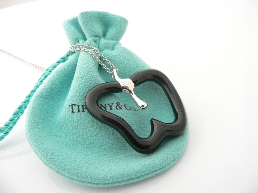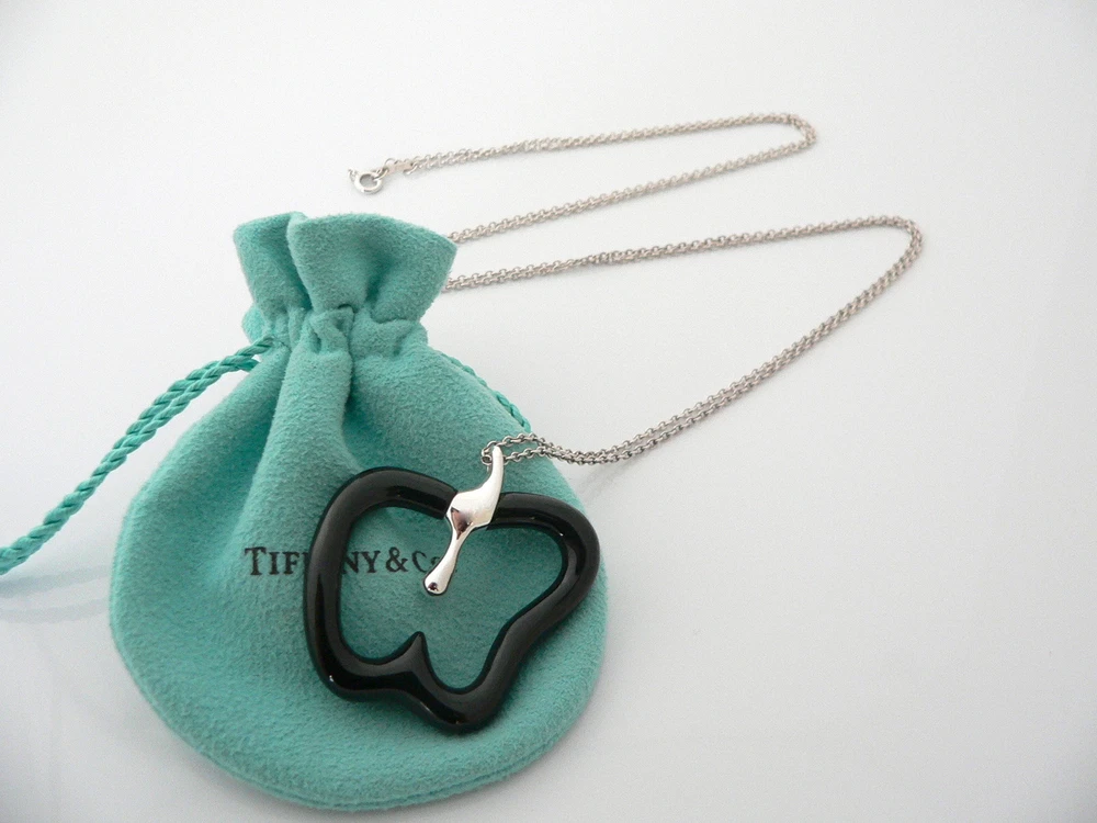 Time to show off your awesome Tiffany necklace! Offered for sale is a gorgeous, wonderful and just gorgeous Tiffany and Co. Peretti XL / Huge Black Jade Nature Apple necklace. Hanging from its gorgeous sterling silver Tiffany curb chain is a fabulous and striking Black Jade Apple pendant. Guaranteed to be a conversation starter! It is just like wearing a piece of art work right on your neck - without the extremely high price! Very elegant, chic and comfortable piece! You will feel both sexy and elegant while wearing this piece. Great necklace to wear for a night in town, at a party, or just going to dinner with friends in jeans or a pretty dress. The style is classic Tiffany, making it a piece that you will most certainly use over and over again. It is very comfortable to wear, and is in excellent / mint / new condition. A great Tiffany piece to start or add to your collection. The piece is fully hallmarked and is guaranteed to be 100% authentic. It will come with its Tiffany pouch as shown! Perfect and ready for gifting! Wonderful present for yourself or anyone you love! Will surely delight! Particulars: Size & Measurements: The necklace is 33.5 inches from end to end. The Black Jade Apple Charm is 1.55 inches wide. (Super cool piece!) Metal & Hallmarks: Tiffany & Co. / Peretti / 925 / China (on Charm) Tiffany & Co / Peretti / 925 / Spain (on Chain Clasp) Solid 925 sterling silver Please check out my other unique and interesting Tiffany items on sale.