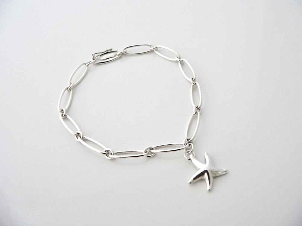 Overview: Offered for sale is a wonderful and gorgeous Tiffany & Co. Sterling Silver Starfish Link bracelet - in a rare, longer 8 inch length!. Definitely a Tiffany piece that you will get your money's value for. It works perfectly with pretty much any attire your put on, AND is an awesome statement piece. It is the perfect bracelet that fits a lifestyle on the go -- the piece can be worn to pretty much any occasion! It is simple, elegant, and classic all rolled into one. Imagine wearing the bracelet with your office attire... now imagine it with jeans or weekend wear ... Perfect anytime! It is a perfect Tiffany piece to start or add to your collection. As always, the item is hallmarked and is guaranteed to be 100% authentic. Wonderful present for yourself or anyone you love! Will surely delight! Particulars: Size & Measurements: The bracelet is 8 inches from end to end. Rare, hard to find length! Metal & Hallmarks: Tiffany & Co. / Elsa Peretti / 925 / Spain Solid 925 sterling silver Please check out my other unique and interesting Tiffany items on sale.