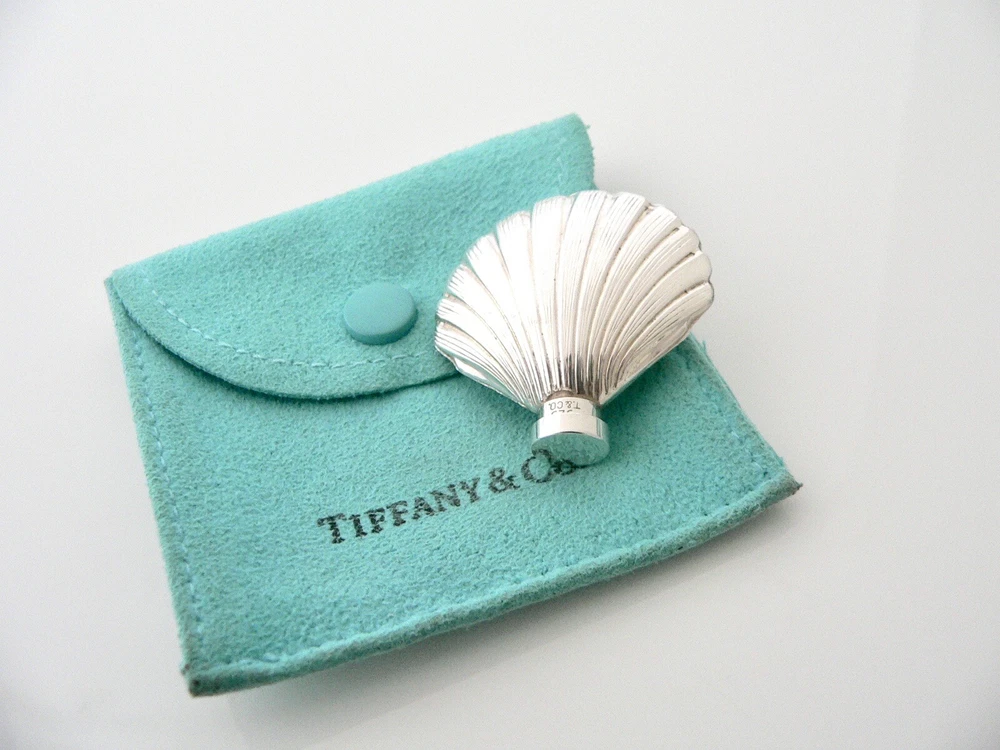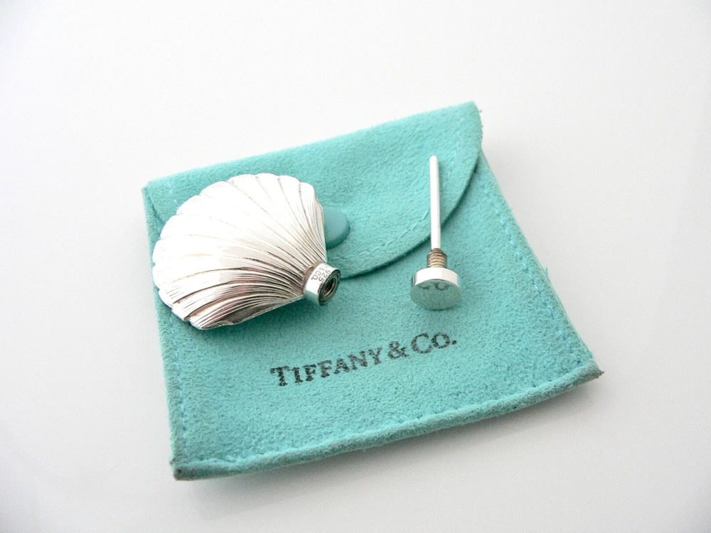 Overview: Offered for sale is a beautiful vintage Tiffany & Co. Sterling Silver Shell perfume bottle / dabber. Super cool and unique Shell shaped perfume container. Definitely an amazing treasure to find! Very pretty and unique piece - you can use it as a perfume container, or just as nice piece to display since it is such a cool piece! It is almost like a work of art! No longer in production, you will be one of the few that will have the fortune of owning this piece. Perfect for the Tiffany collector. As always, the item is fully hallmarked and guaranteed to be 100% authentic. It will come with its Tiffany pouch as shown! Wonderful present for yourself or anyone you love! Will surely delight! Particulars: Size & Measurements: The Shell Perfume Bottle is approx. 1.5 inches. Metal & Hallmarks: T & Co. / 925 (on Shell Perfume Bottle) Solid 925 sterling silver Please check out my other unique and interesting Tiffany items on sale.